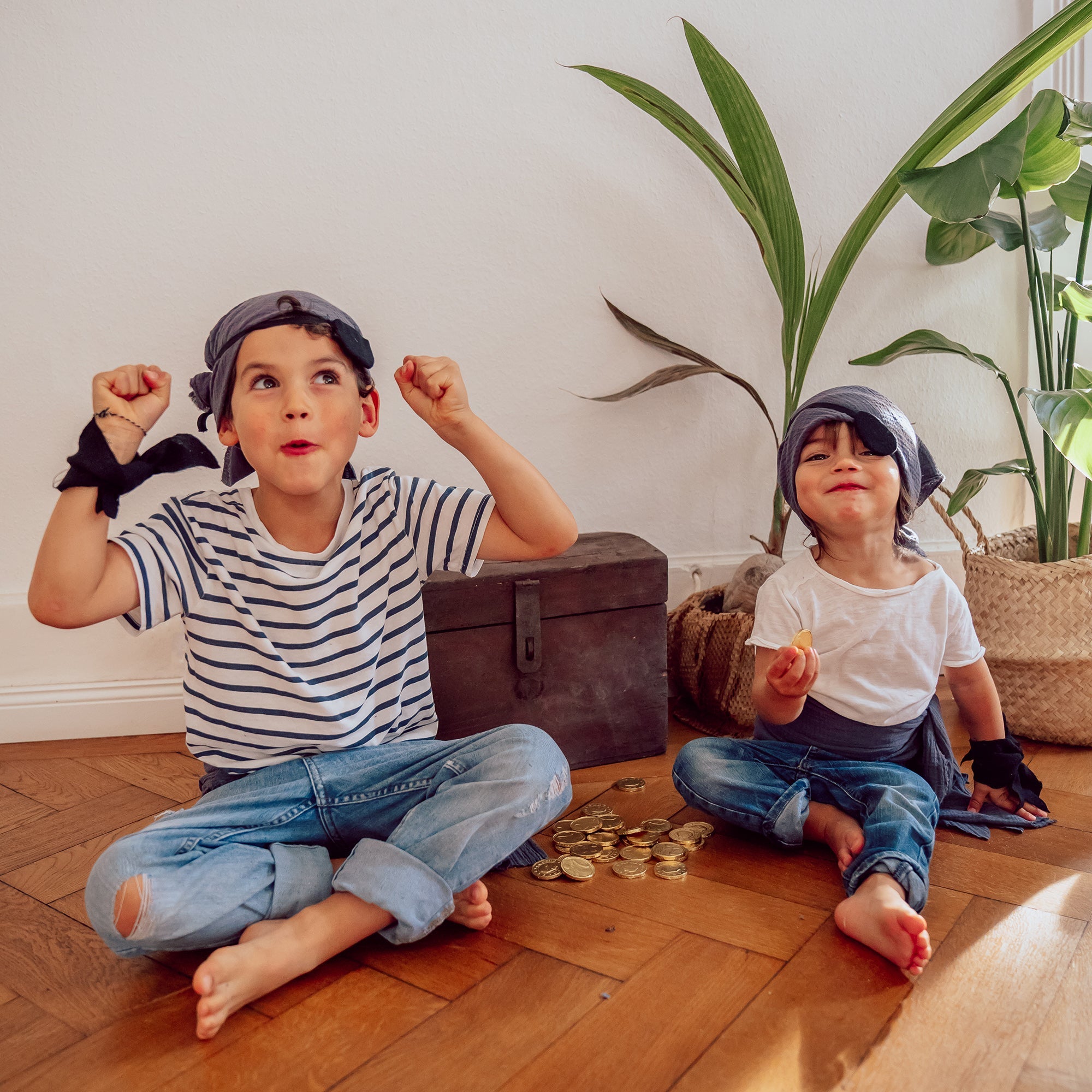 Halloween steht vor der Türe! Unsere Anleitung ist für alle, die auf der Suche nach einem süßen Last-Minute Kostüm sind und Spaß am Basteln haben. Das Piraten-Kostüm sieht dabei nicht nur zuckersüß aus, sondern ist auch in nur sechs Schritten super schnell nachgemacht. Und das Beste daran: Die meisten Materialen hast du wahrscheinlich schon zu Hause. Falls du noch irgendwo Stoffreste rumliegen haben solltest, kannst du diese hierfür ideal verwerten!