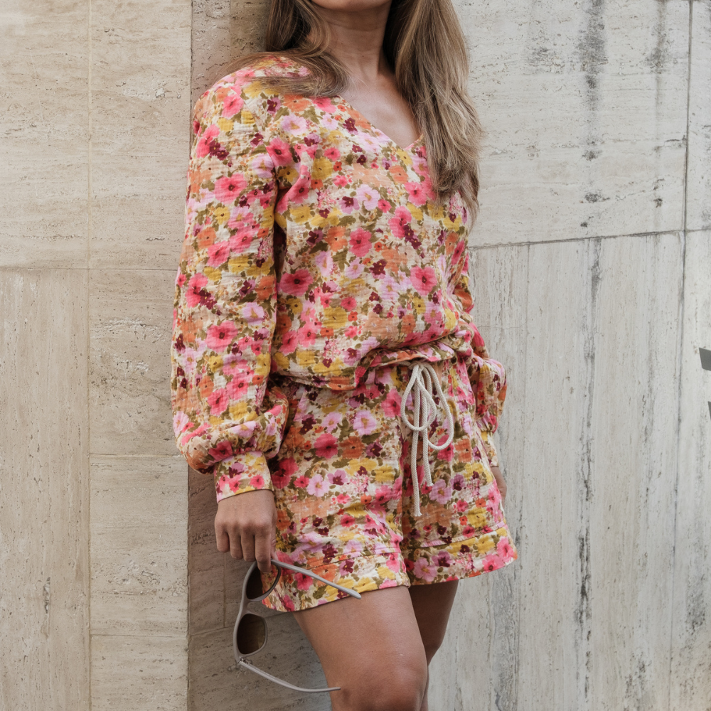 Kombiniere unsere Shorts mit einer unserer Musselin-Blusen und sofort hast du ein stylishes Musselin-Outfit.