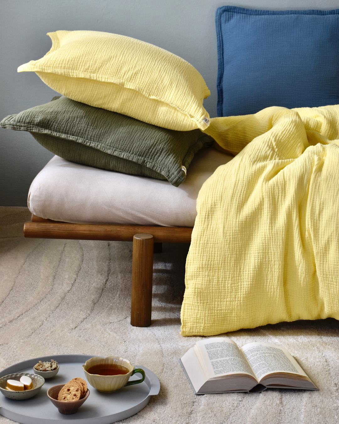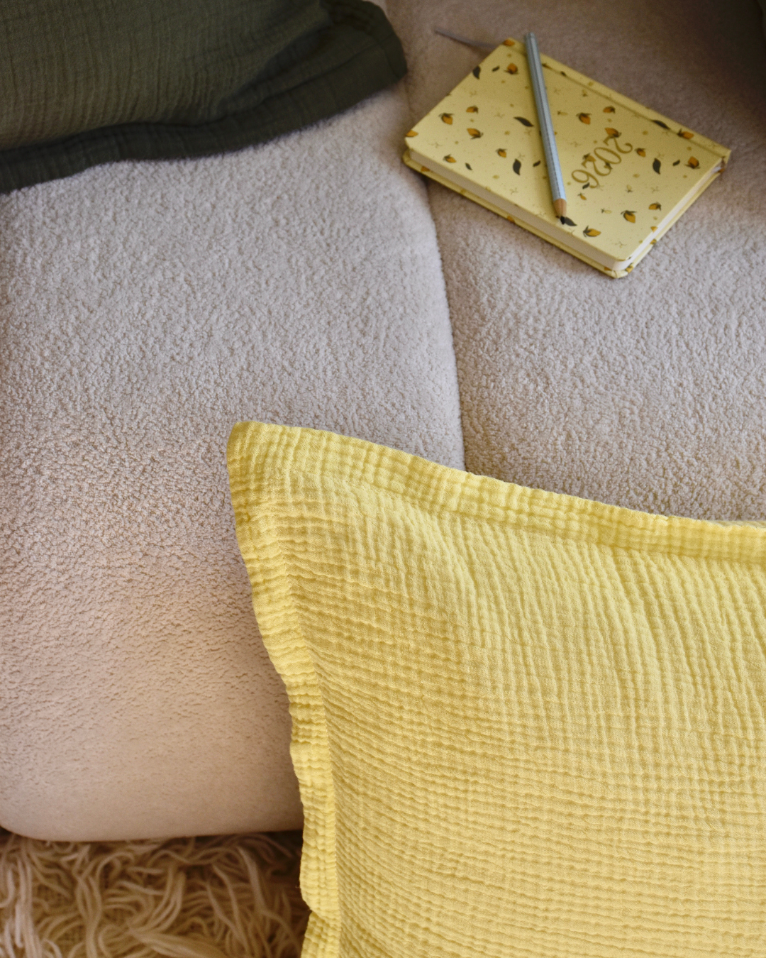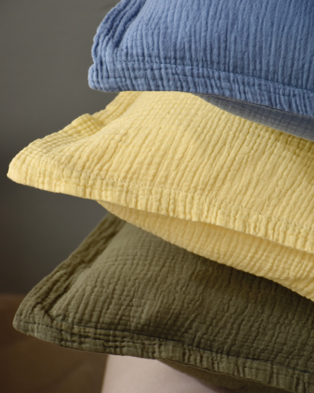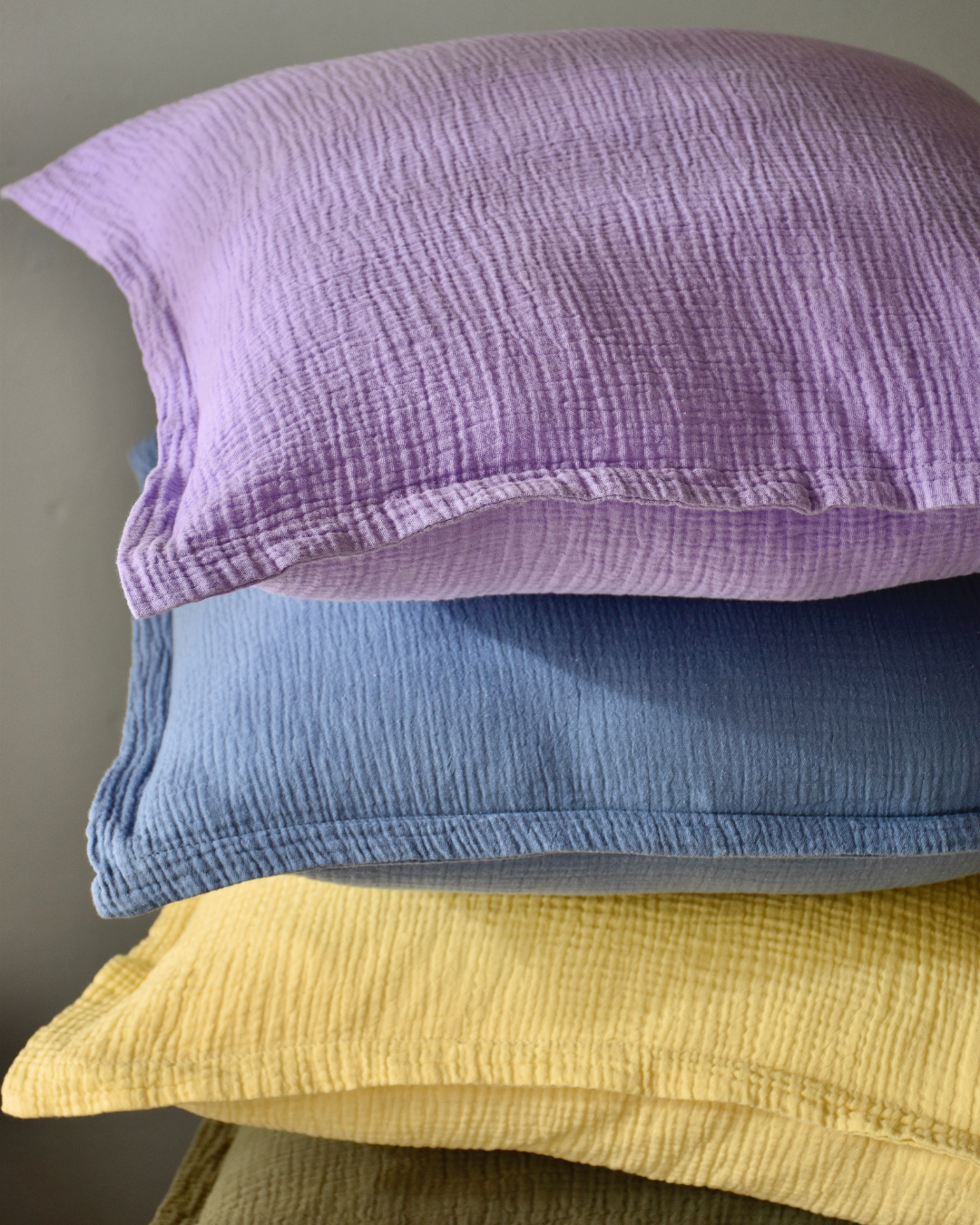 Unsere Musselin Kissen lassen sich vielseitig kombinieren und sind ein echtes Highlight für jedes Zuhause. Ergänze dein Sofa mit farblich abgestimmten Decken oder schaffe mit passender Bettwäsche aus dem gleichen Material eine harmonische Atmosphäre im Schlafzimmer. Besonders im Kinderzimmer sorgen die weichen Kissen für eine gemütliche, sichere Umgebung.