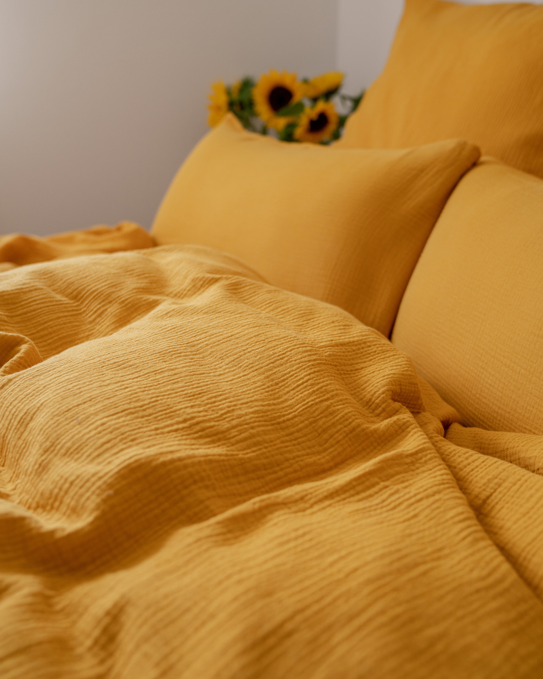 Der weiche Musselinstoff aus 100 % Bio-Baumwolle ist atmungsaktiv, anschmiegsam und wird mit jedem Waschen noch ein bisschen weicher. Ein echter Wohlfühl-Allrounder – für alle, die minimalistisches Design, natürliche Materialien und maximalen Komfort lieben.