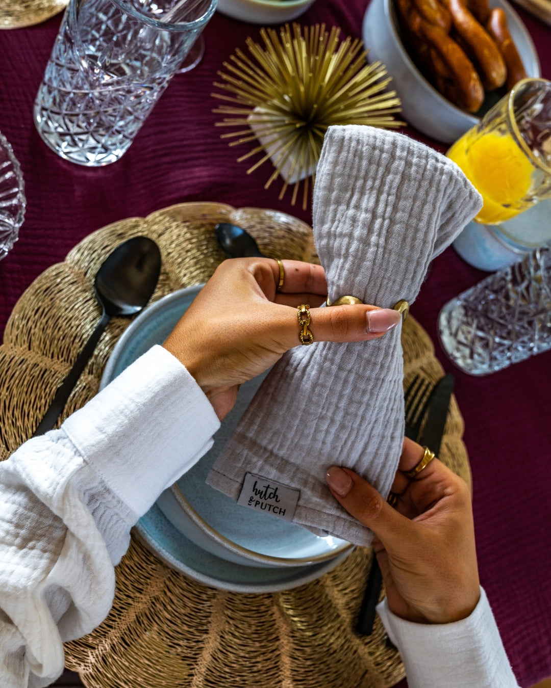 Sei es das Mittagessen mit der Familie oder das Dinner mit den besten Freunden – unsere Musselin-Textilien werten jeden Tisch auf und sind ein garantierter Blickfang.