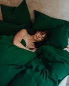 Unser Musselin-Kopfkissen in Tannengrün, einem tiefen Grün aus der Kollektion Nordic Aesthetics, sind die ideale Ergänzung zu unserer beliebten Musselin-Bettwäsche – für ein rundum stimmiges Schlafzimmer im Skandi-Stil!