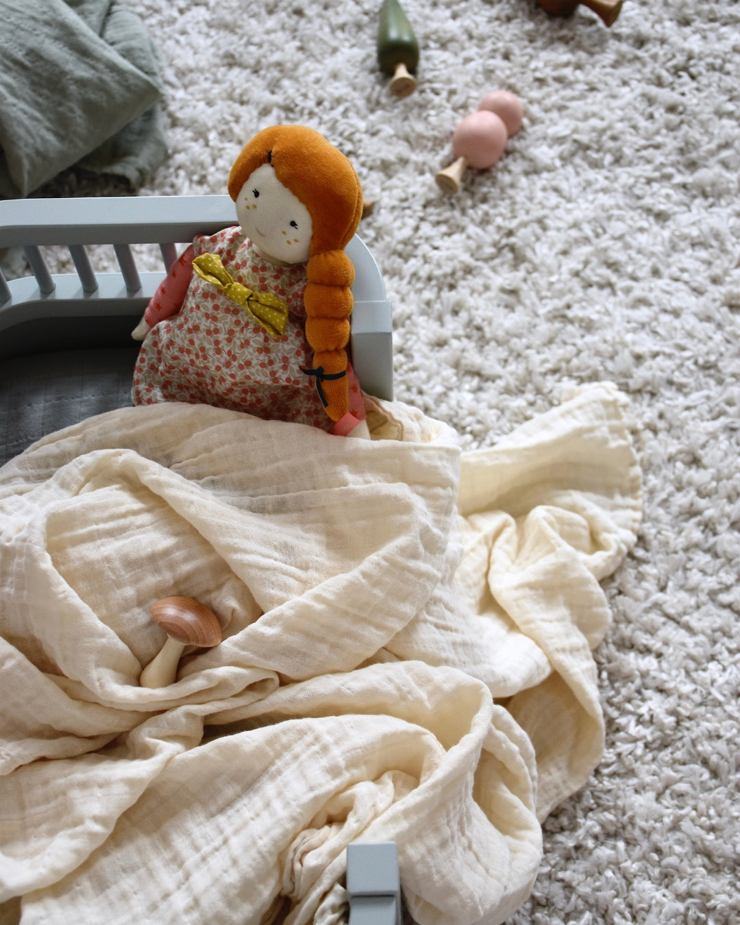 Auch die Pflege ist unkompliziert: Die Decke kann einfach in der Maschine gewaschen und an der Luft getrocknet werden. Musselin wird mit jeder Wäsche weicher und bleibt dabei strapazierfähig, sodass die Decke lange erhalten bleibt – nachhaltig, praktisch und alltagstauglich.