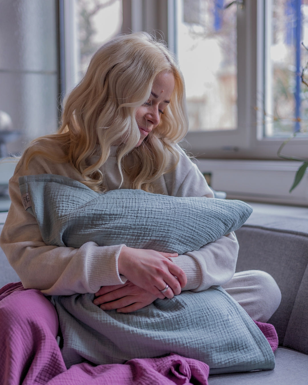 Egal ob Sofadecke, Sofakissen oder unsere leichte Sommerdecke: Musselin ist ein absoluter Hingucker in Deinem Zuhause. Dabei sind unsere Produkte auch vielseitig einsetzbar: auf der Couch, im Garten oder sogar im Sommer als leichte Bettdecke.
