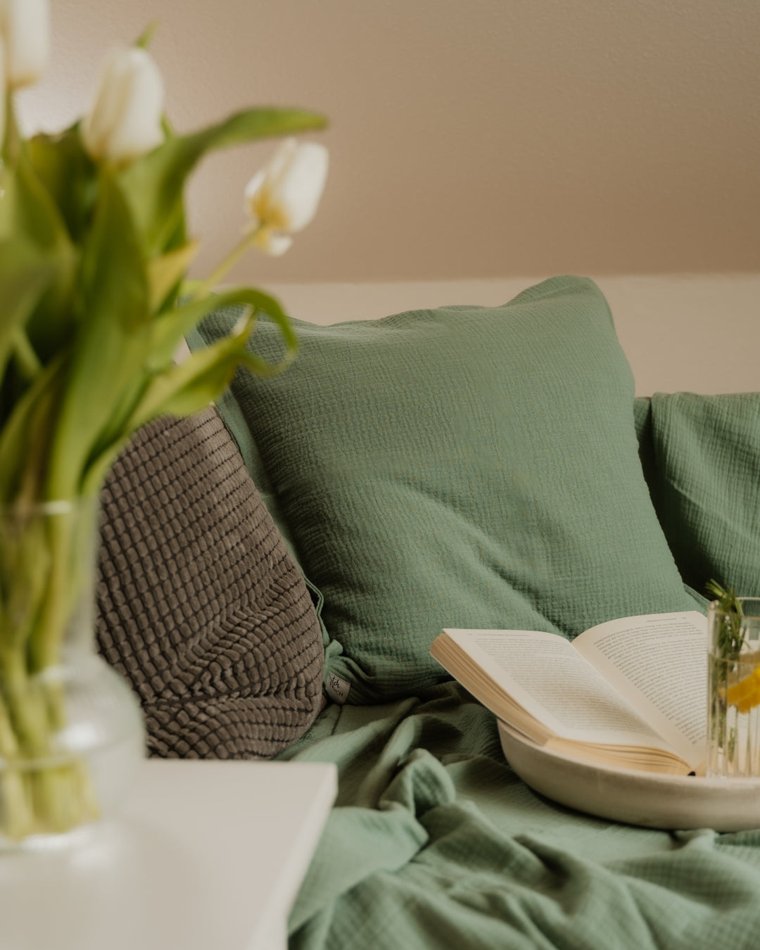Musselin-Sofakissenbezug "Adela" • Eucalyptus