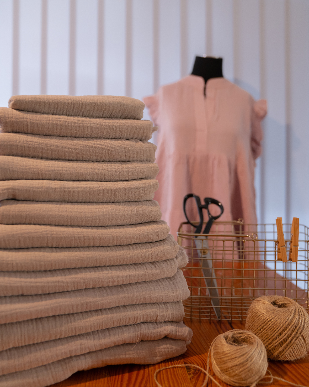 Paket mit hochwertigen Bio Musselin Stoffen in der Farbe Stein