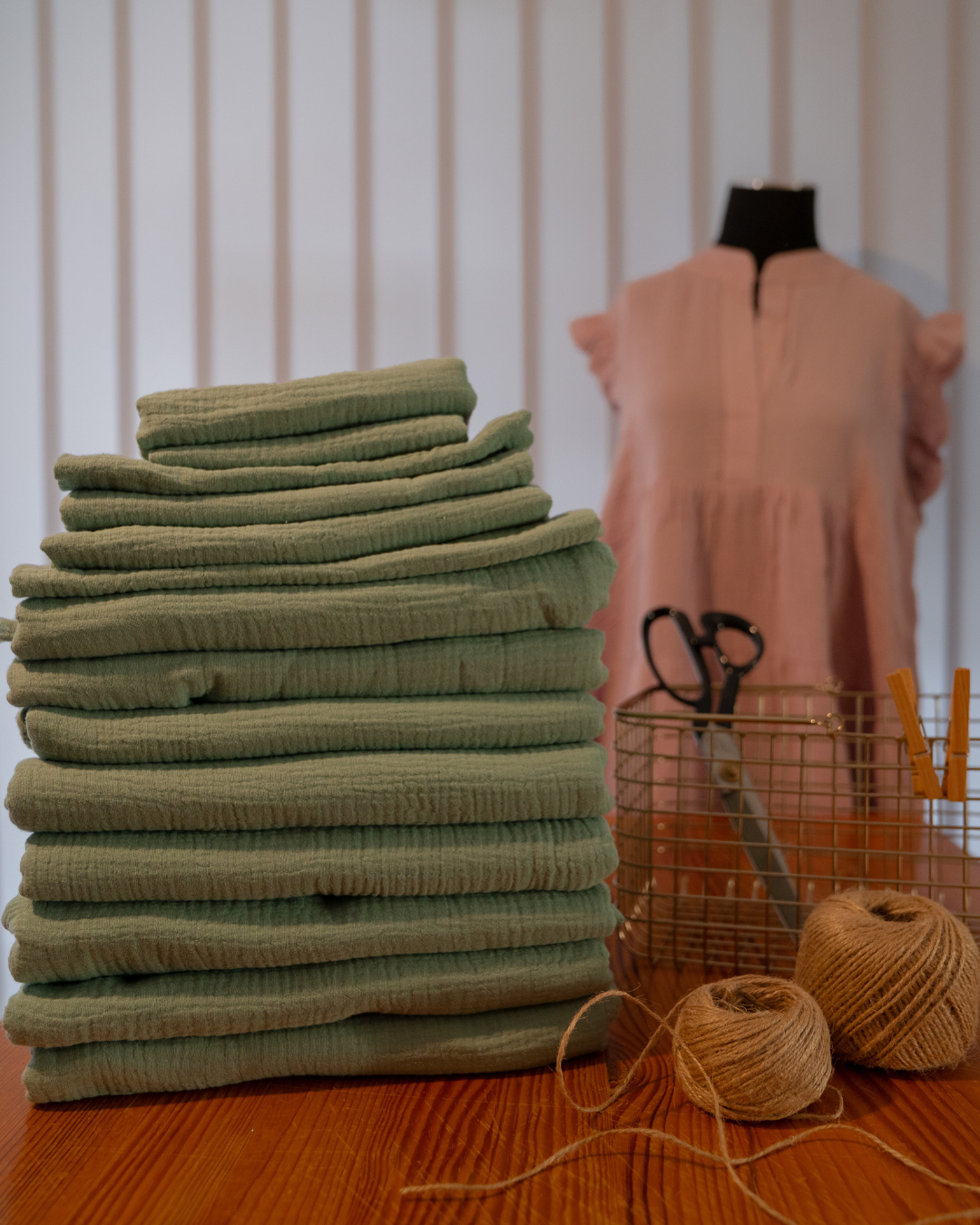 Paket mit hochwertigen Bio Musselin Stoffen in der Farbe Eucalyptus