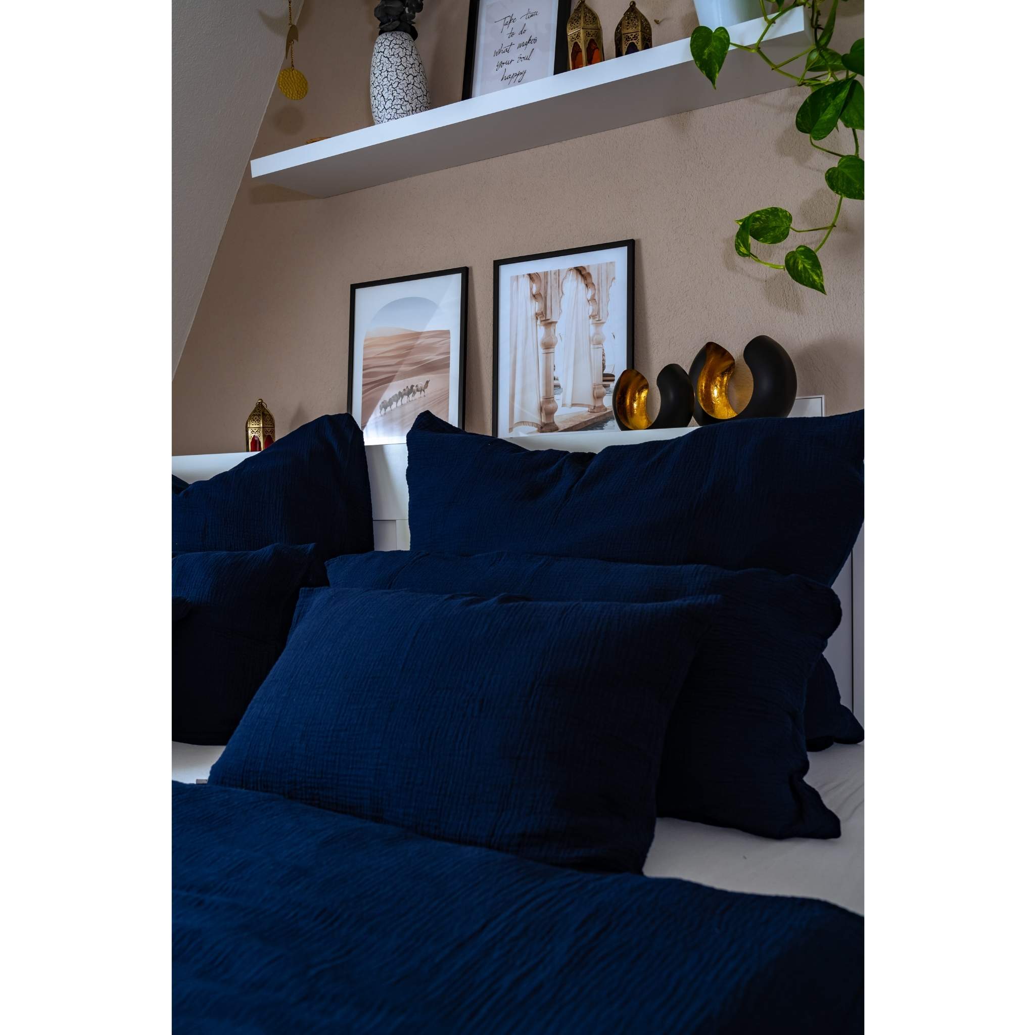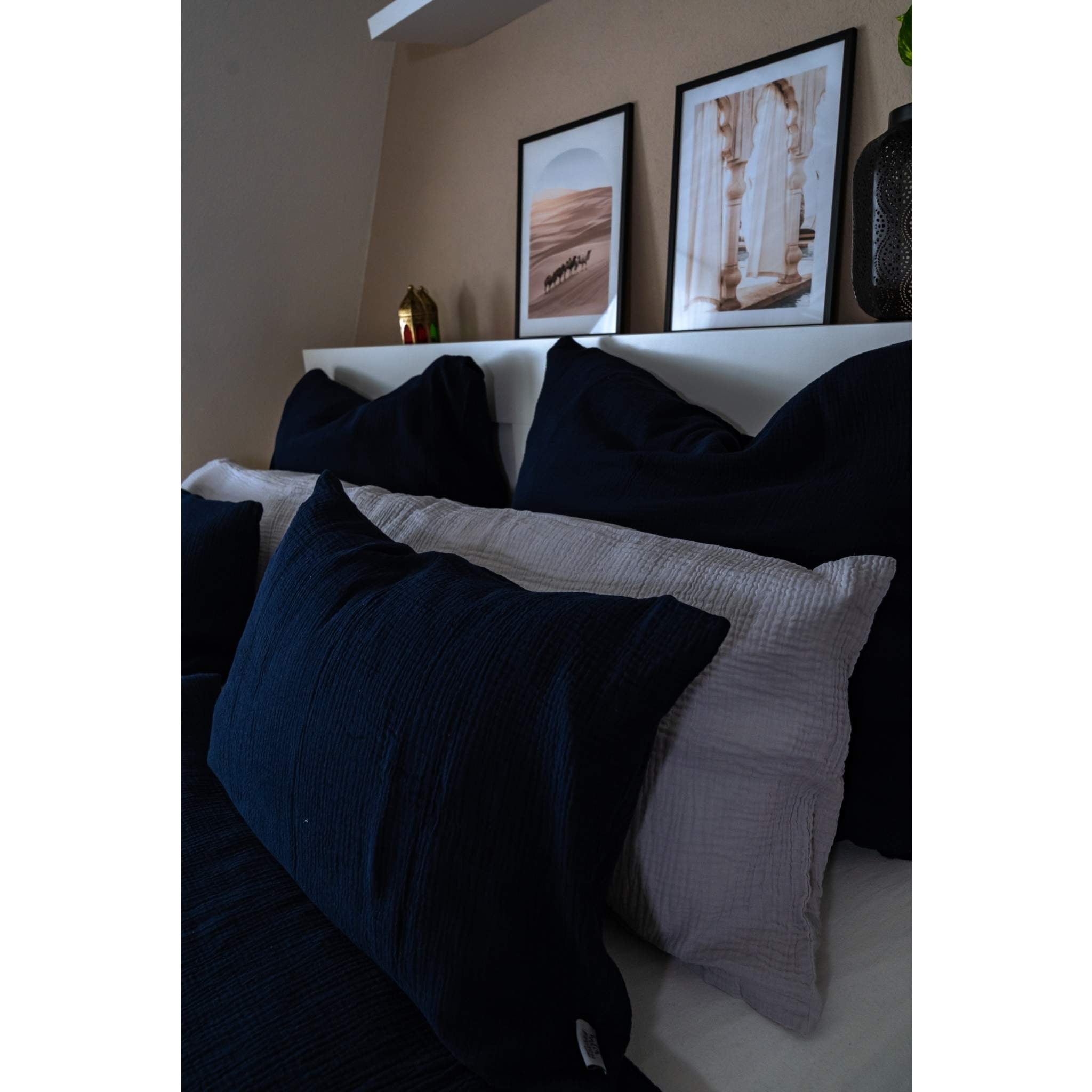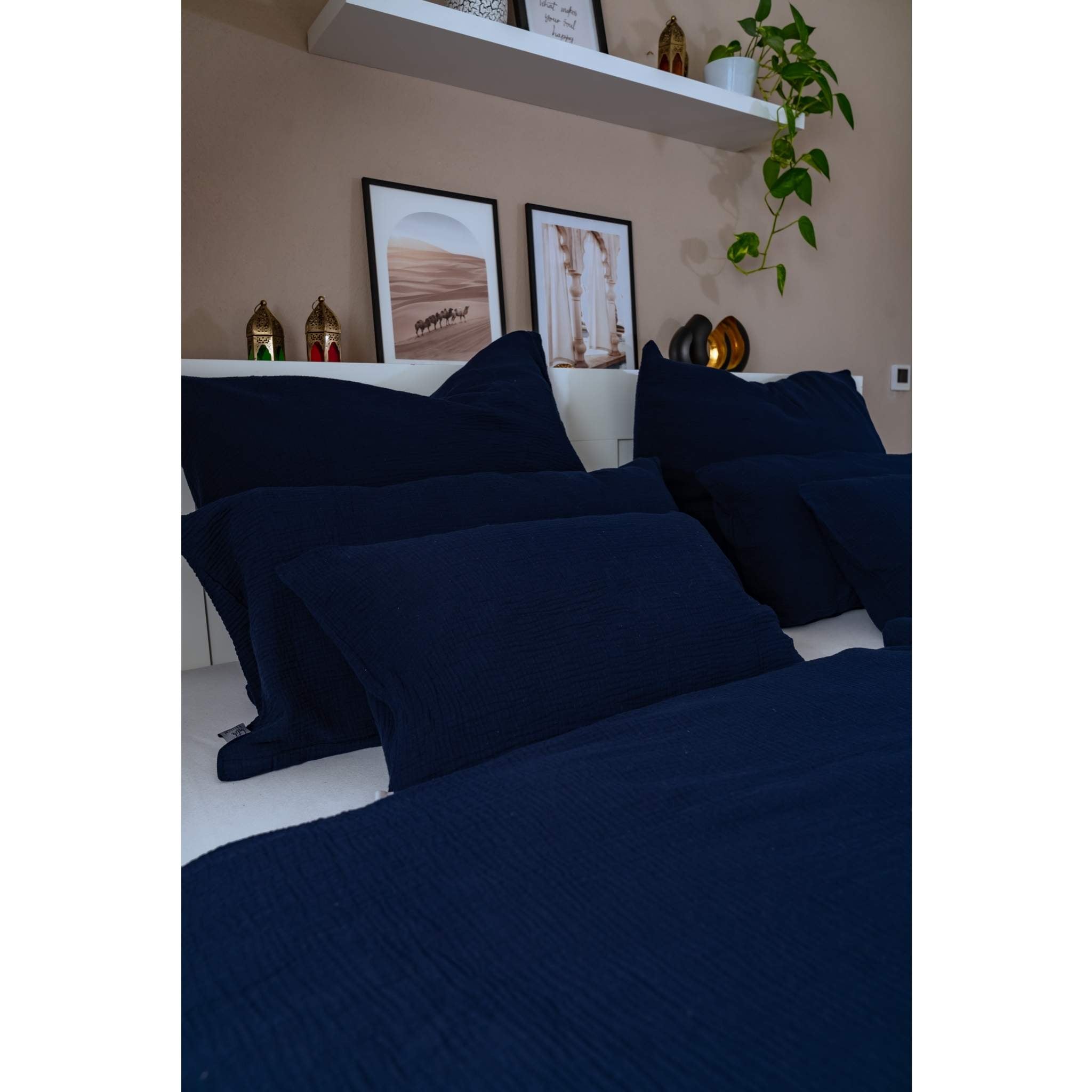 Our Muslin pillow in Berry, a vibrant mix of purple and pink from the Mother Earth Collection, are the ideal complement to our popular Muslin linens – for an all-round coherent Scandinavian or boho style bedroom!