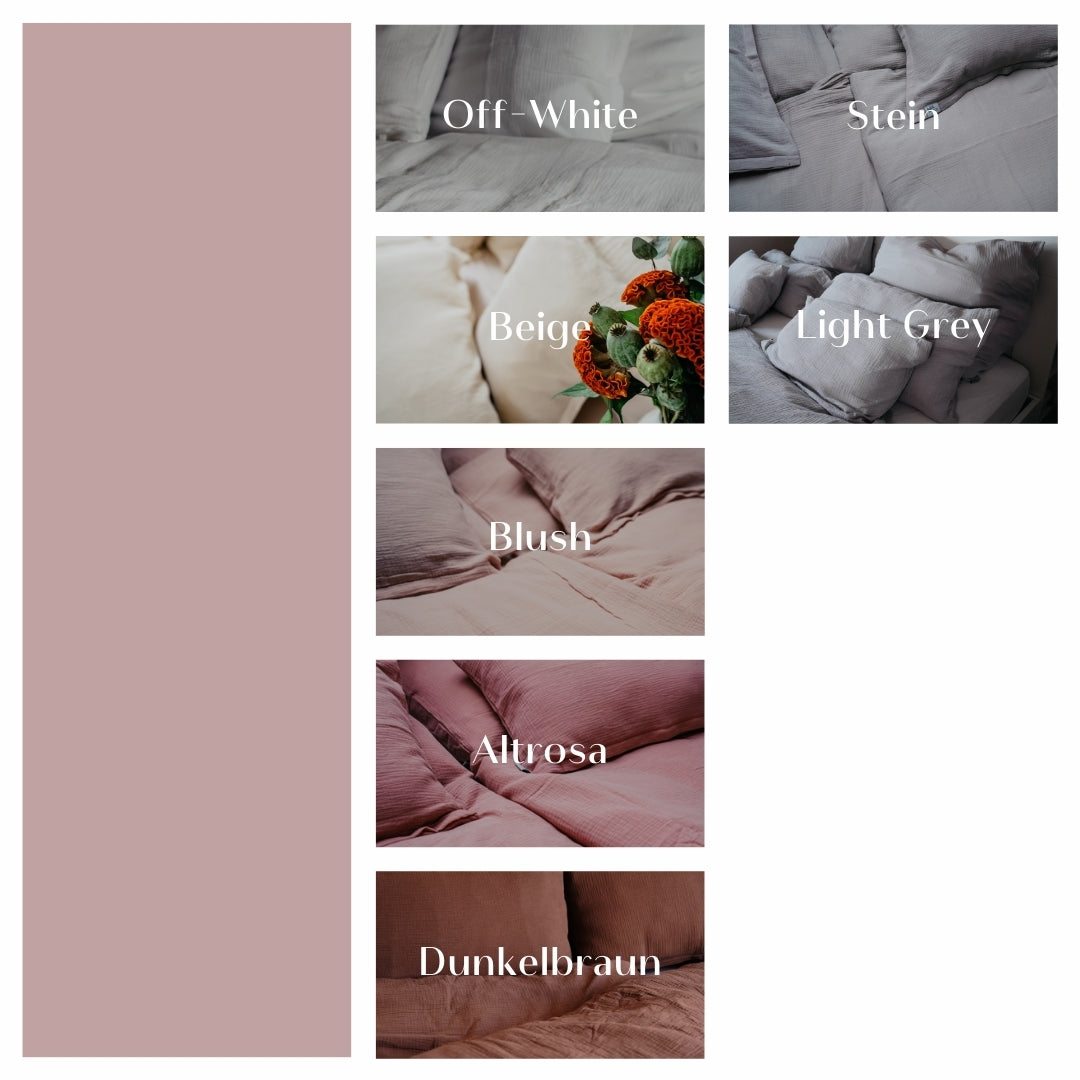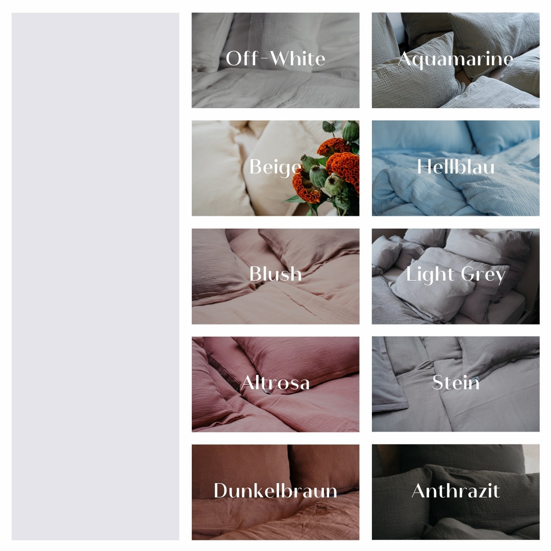 Available in four different sizes and colors to match your interior style and your muslin bedding.