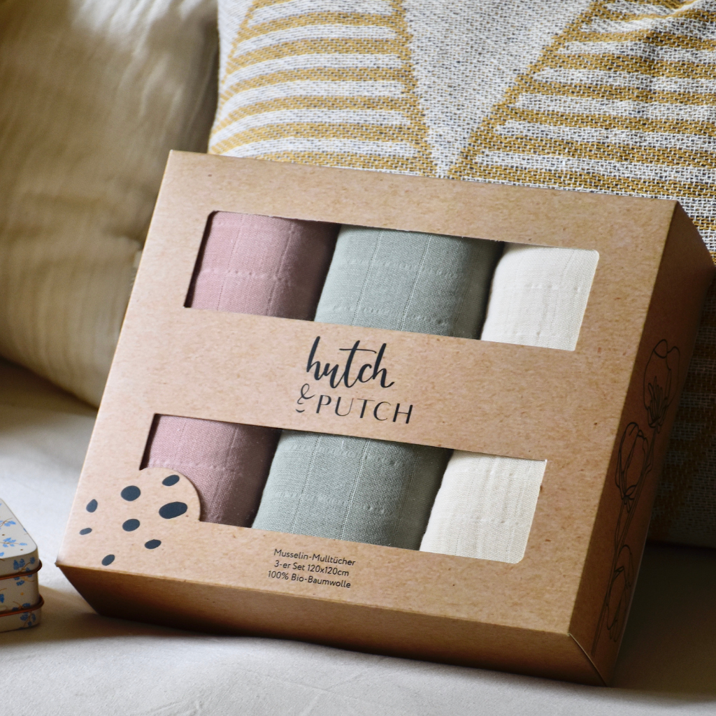 Our popular muslin cloths are now finally available in one color! The practical set of 3 includes the following colors: cream white, sage green and pink.