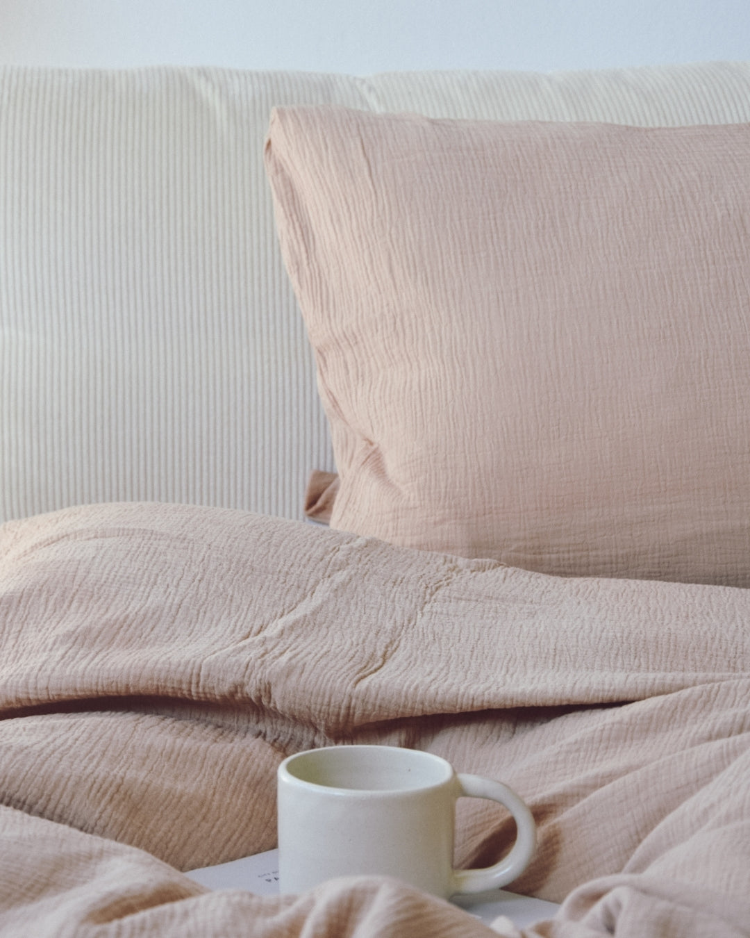 Our muslin pillowcase in delicate Blush is the ideal addition to our popular muslin bedding - for a perfectly harmonious bedroom!