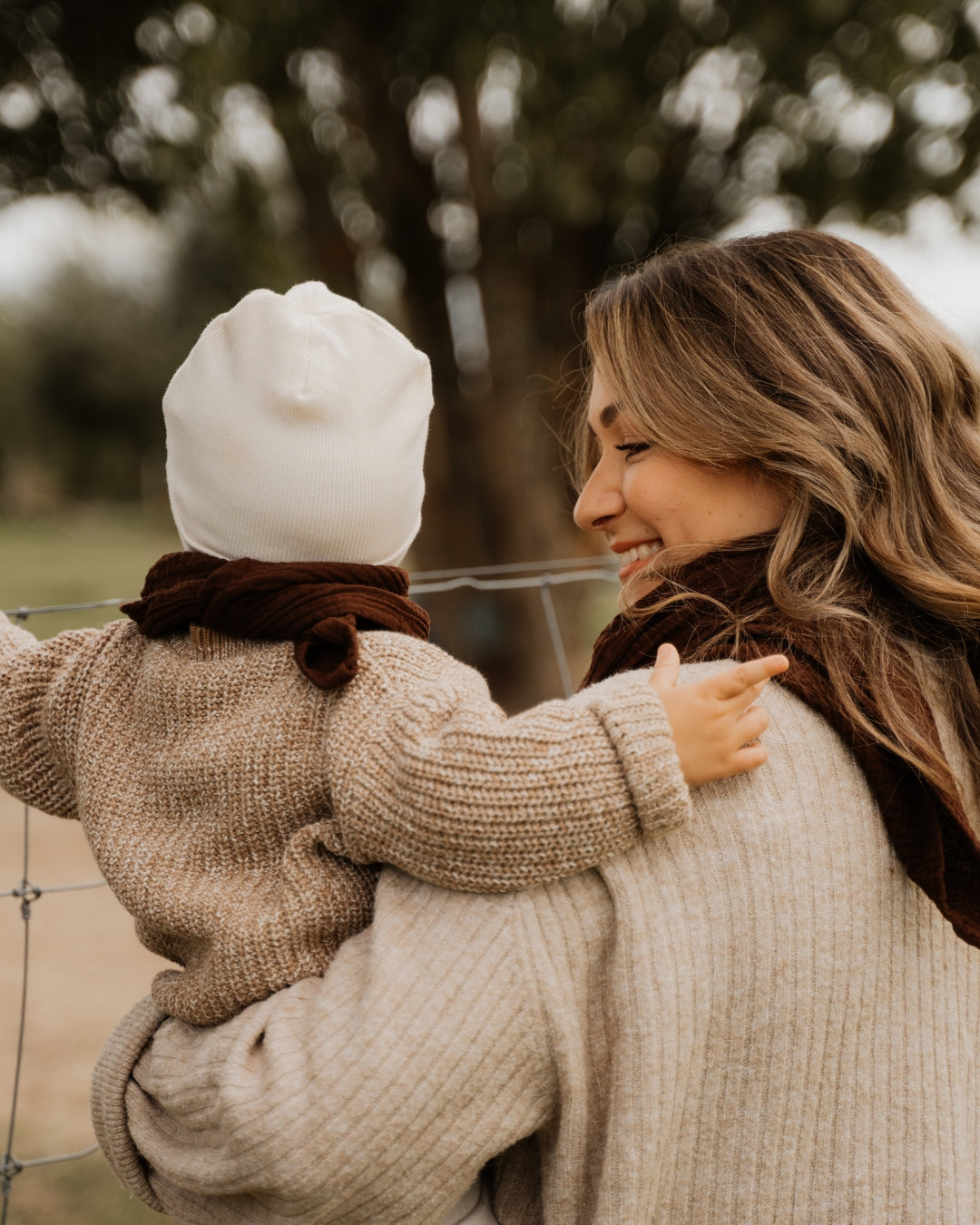 From now on you don't need hundreds of scarves anymore! Our muslin scarf in dark brown is the perfect accessory for hip babies - whether it's winter or summer! Thanks to the breathable and temperature-regulating properties of the fabric, our muslin scarf is an all-rounder that can be used in any season! Whether as a classic scarf, a stylish headscarf, an absorbent bib or a small travel towel - this scarf is everything you need ;) Soft and scratch-free, this must-have is available in many trendy colors and four different sizes for the whole family.