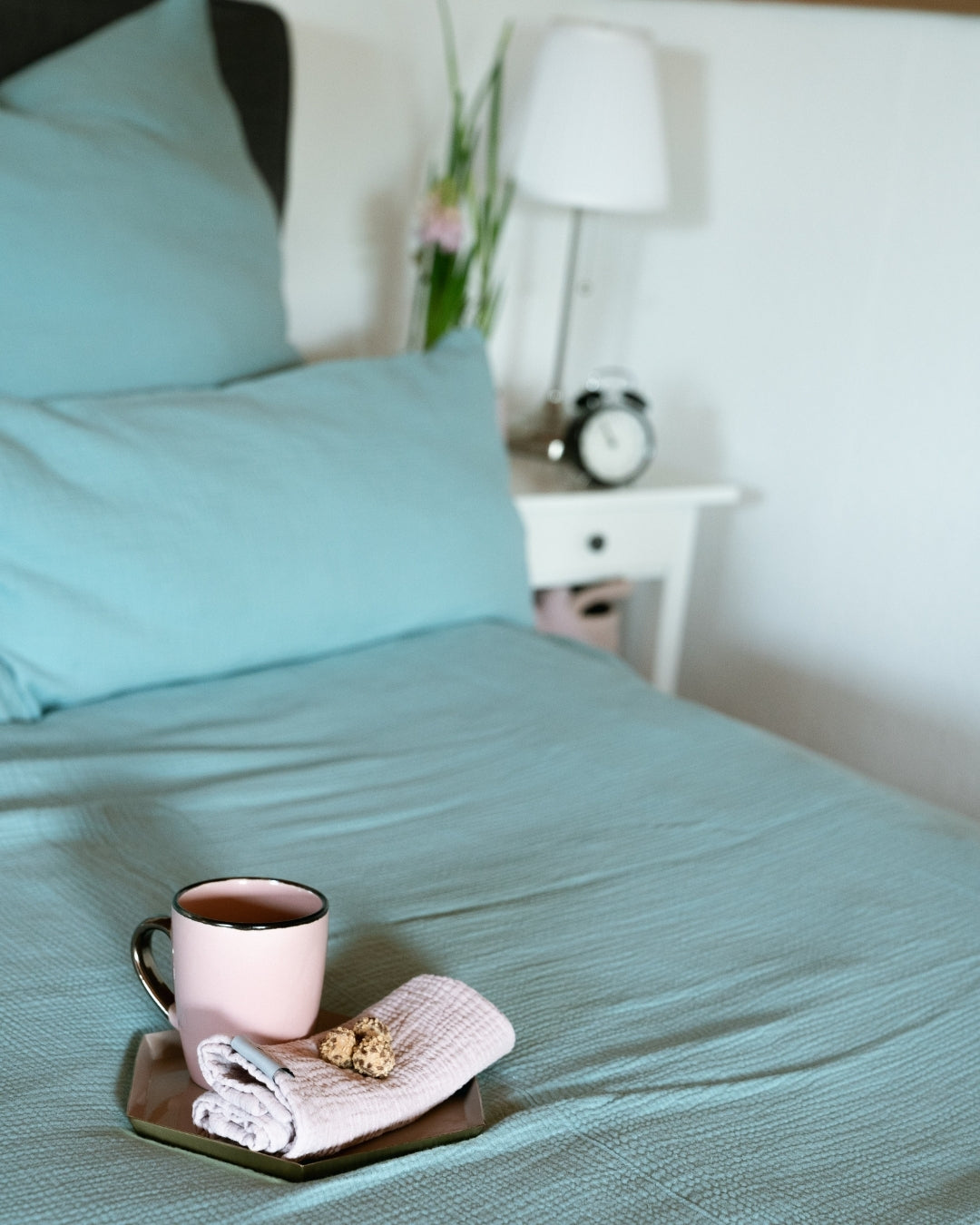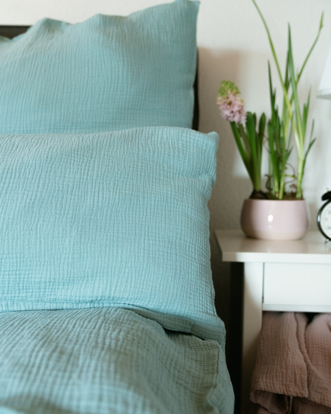 Our muslin pillow in brilliant sky blue is the ideal addition to our popular muslin bed linen – for an all-round harmonious bedroom!