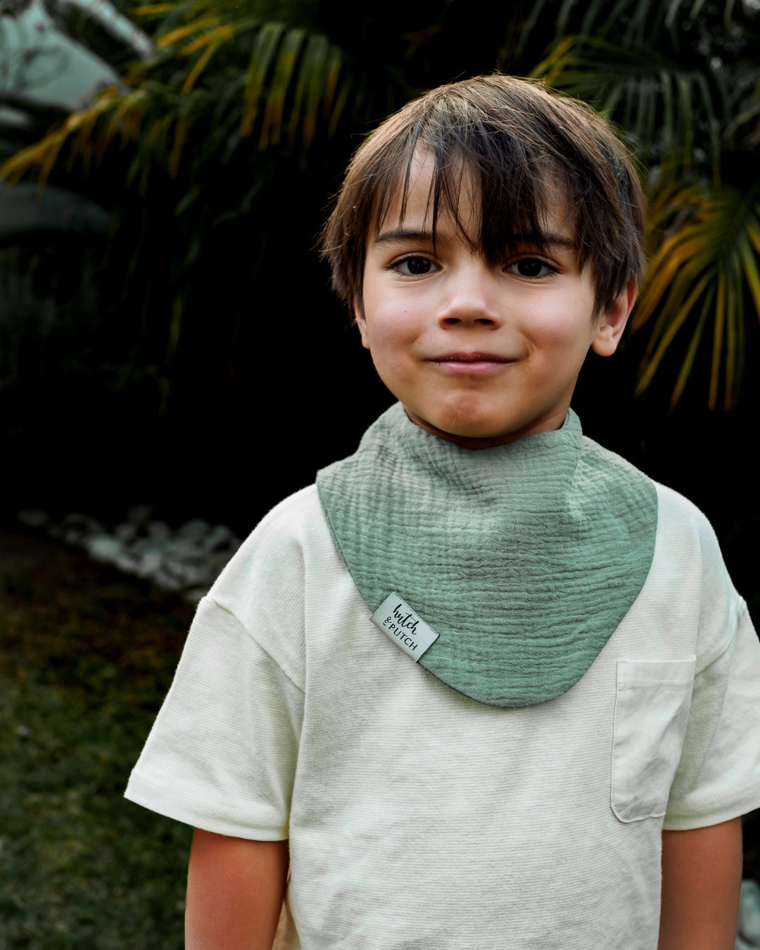hutch&putch meets HeyJune: We have teamed up with the label HeyJune, which offers sustainable, fair-trade, and beautiful children's fashion in their own online store. The result is the muslin bib in the HeyJune-signature-color Eucalyptus.