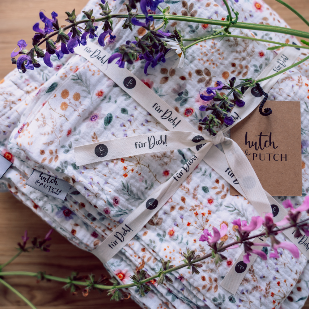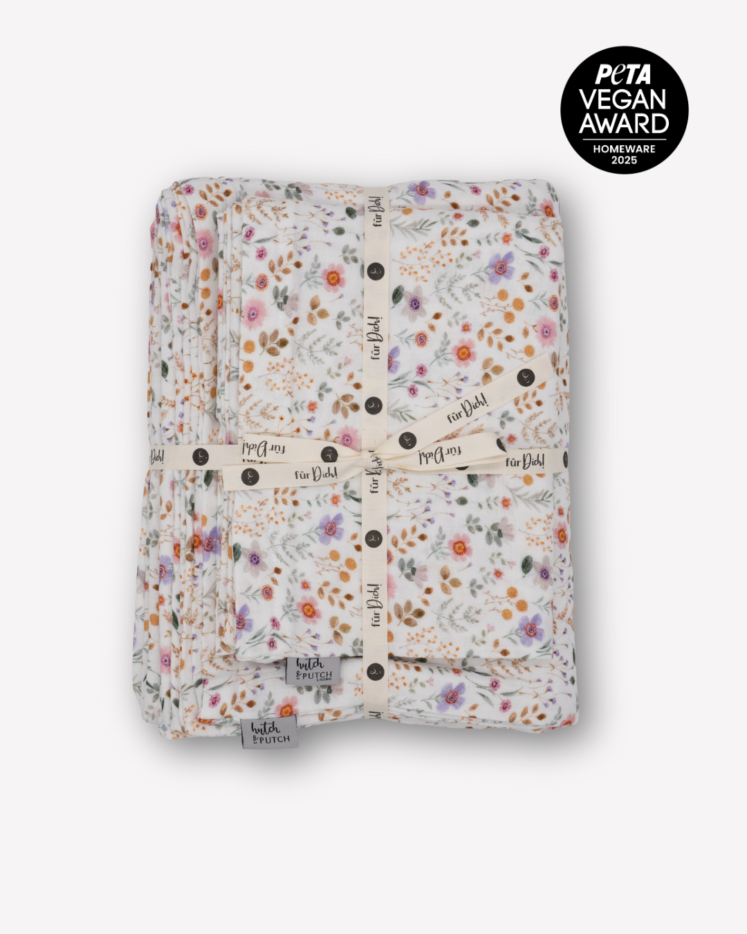 Unser kuschelweicher Musselinstoff aus 100 % Bio-Baumwolle trägt das zarte Wildflower-Design, das an sanft schaukelnde Gräser und bunte Blüten auf sommerlichen Wiesen erinnert.