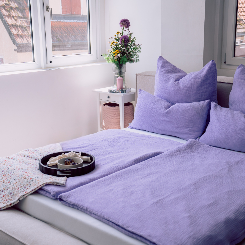 Du wolltest schon immer mal wie auf Wolken schlafen? In unserer kuscheligen und stilvollen Musselin Bettwäsche träumst Du Dich Nacht für Nacht in einen himmlischen Schlaf. Ausschlafen und Entspannen war noch nie so verlockend. Egal ob Du Dich Abends unter die Decke kuschelst oder den Sonntagsbrunch im Bett genießt - in unserer Musselin Bettwäsche fühlt man sich geborgen und zuhause! Für jede Jahreszeit geeignet, denn dank der temperaturausgleichenden Eigenschaft von Musselin kühlt Dich unsere Bettwäsche im Sommer und sorgt für wohlige Wärme im Winter.