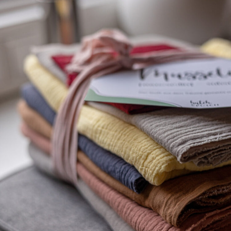 Wir verzichten komplett auf Verpackungsmüll aus Plastik. Deine neuen Musselinlieblinge werden nicht in Plastik eingepackt - stattdessen verwenden wir unsere eigenen Stoffreste, um zerbrechliche Sendungen zu schützen oder um unnötige Luft im Paket zu vermeiden.