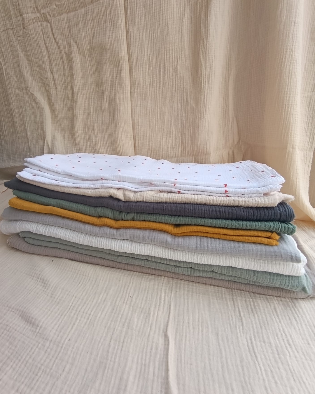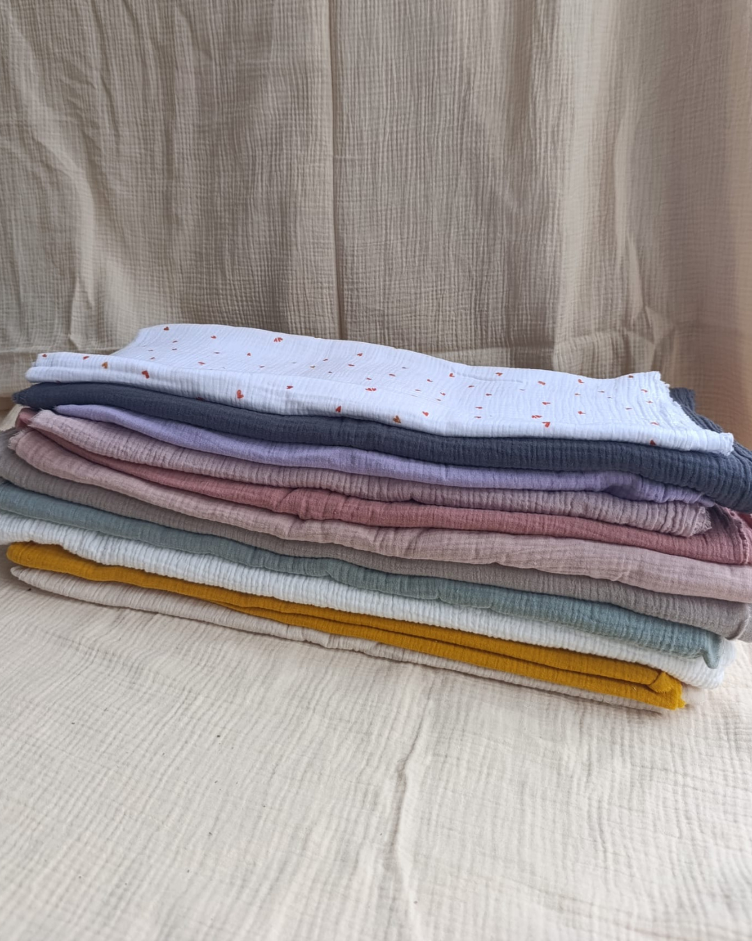 Paket mit hochwertigen Bio Musselin Stoffen in verschiedenen Farben