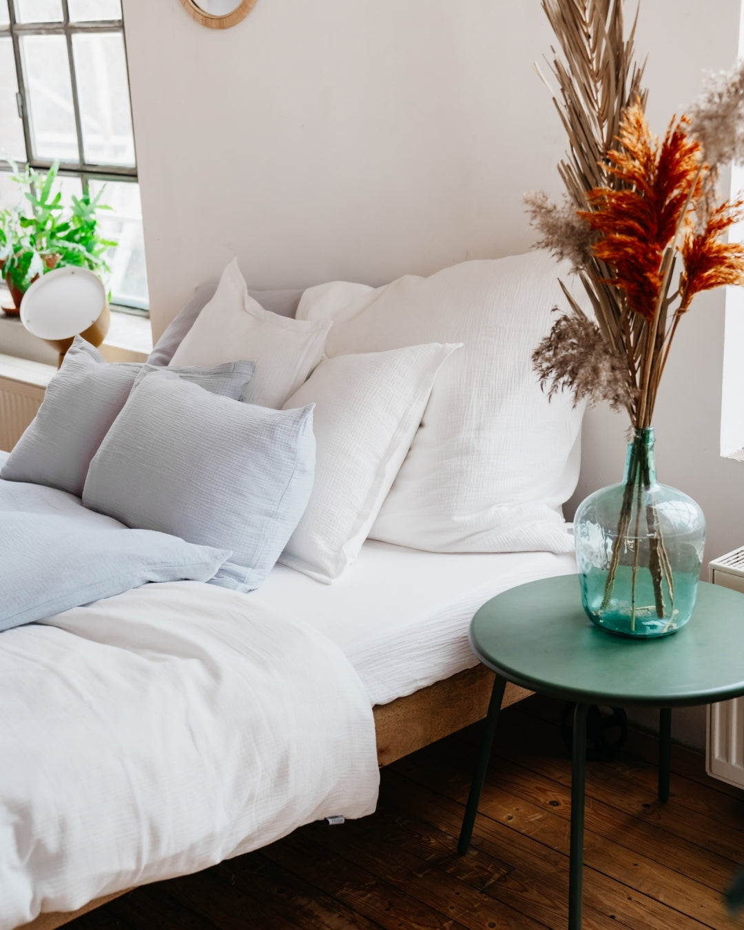 Wasche deine Musselin-Bettwäsche bei 40 Grad.