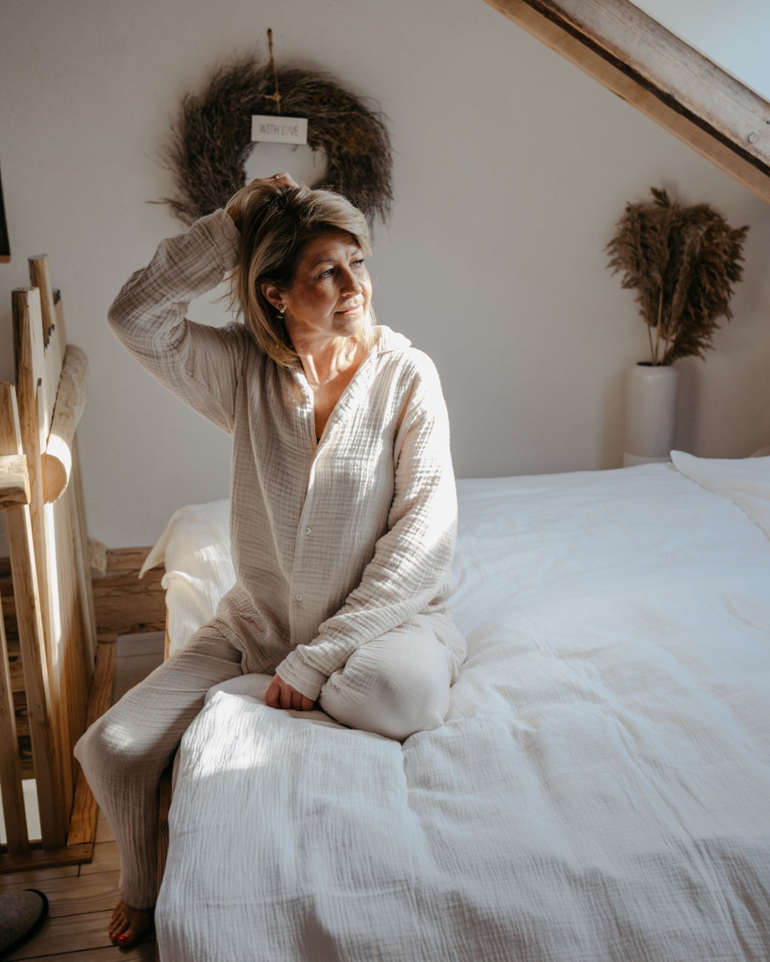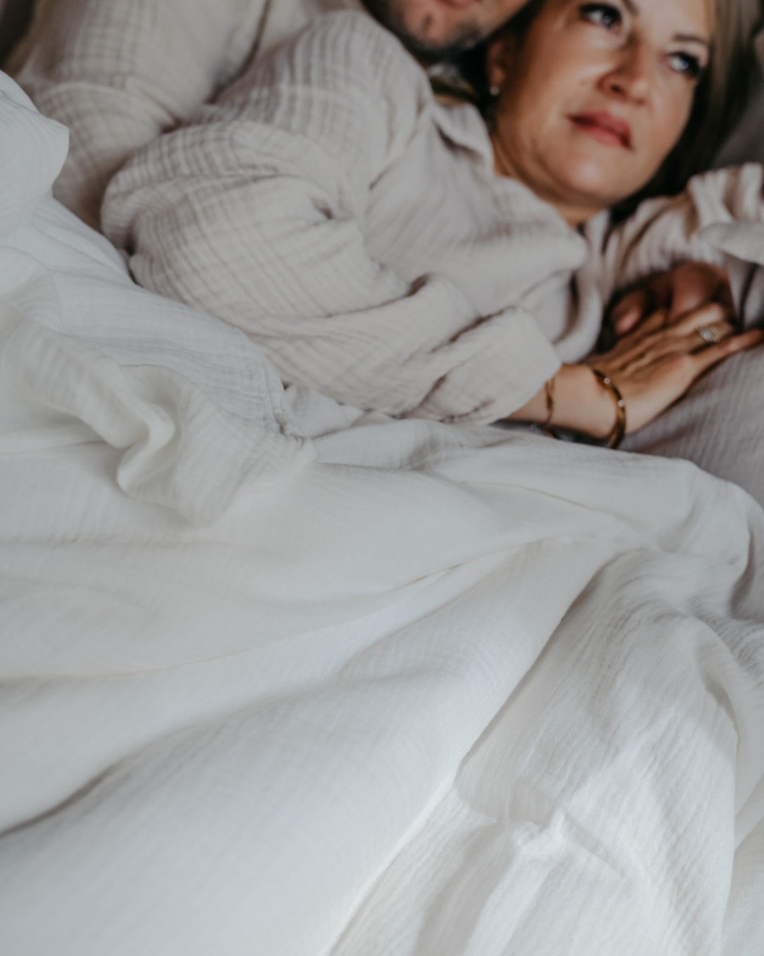 Du wolltest schon immer mal wie auf Wolken schlafen? In unserer kuscheligen und stilvollen Musselin Bettwäsche träumst Du Dich Nacht für Nacht in einen himmlischen Schlaf. Ausschlafen und Entspannen war noch nie so verlockend. Egal ob Du Dich Abends unter die Decke kuschelst oder den Sonntagsbrunch im Bett genießt - in unserer Musselin Bettwäsche fühlt man sich geborgen und zuhause! Für jede Jahreszeit geeignet, denn dank der temperaturausgleichenden Eigenschaft von Musselin kühlt Dich unsere Bettwäsche im Sommer und sorgt für wohlige Wärme im Winter.