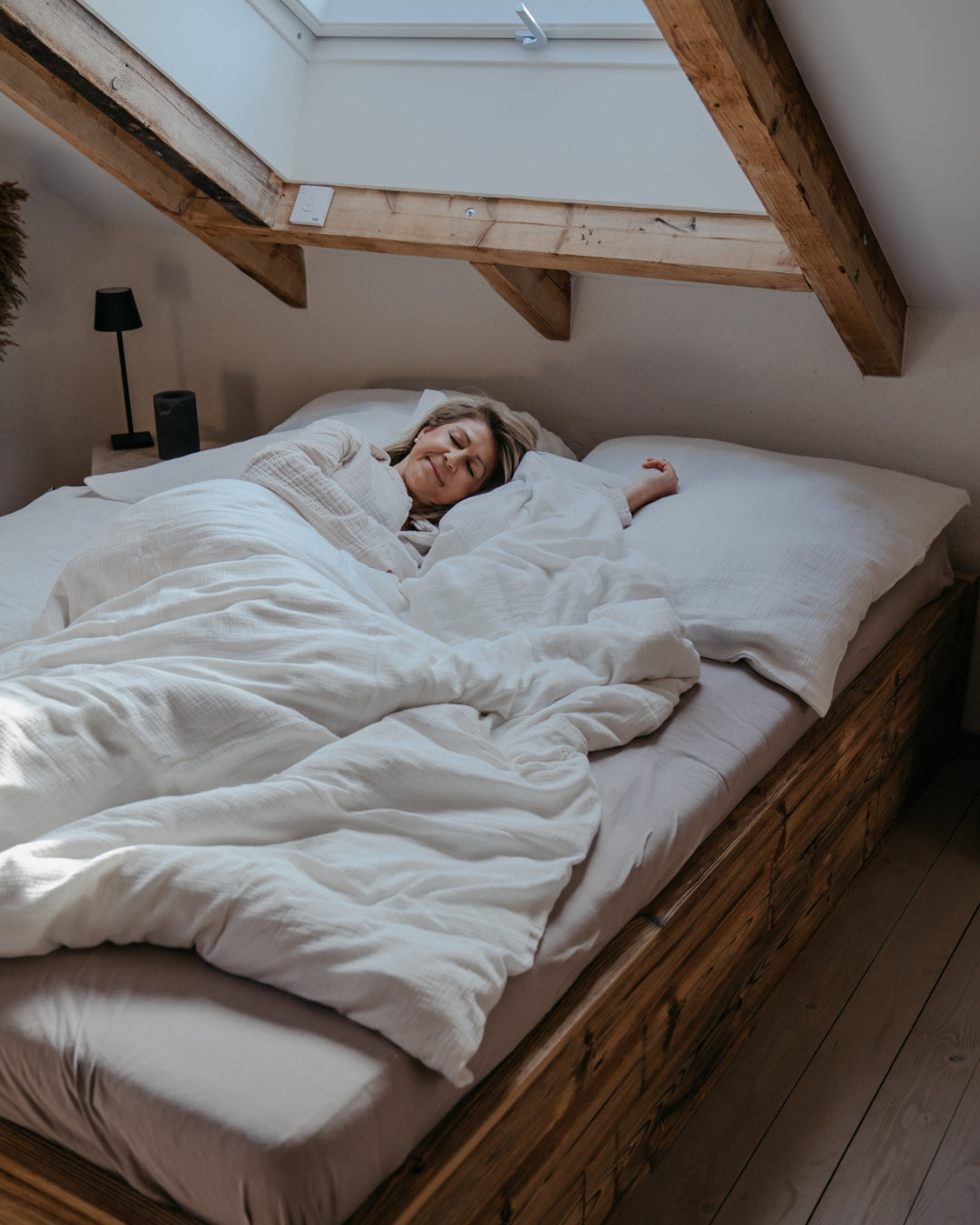 Schlafen wie auf Wolke 7 - Herrlich weich und angenehm auf der Haut: Der Musselin-Stoff aus 100% Bio-Baumwolle ist luftig, leicht und kuscheliger, als ein glatter Stoff.