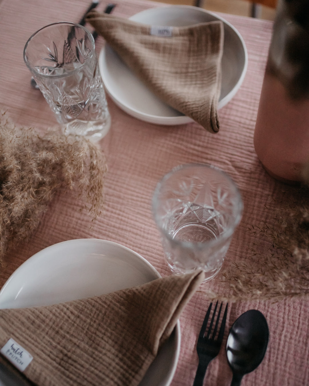 Sei es das Mittagessen mit der Familie oder das Dinner mit den besten Freunden – unsere Musselin-Textilien werten jeden Tisch auf und sind ein garantierter Blickfang.