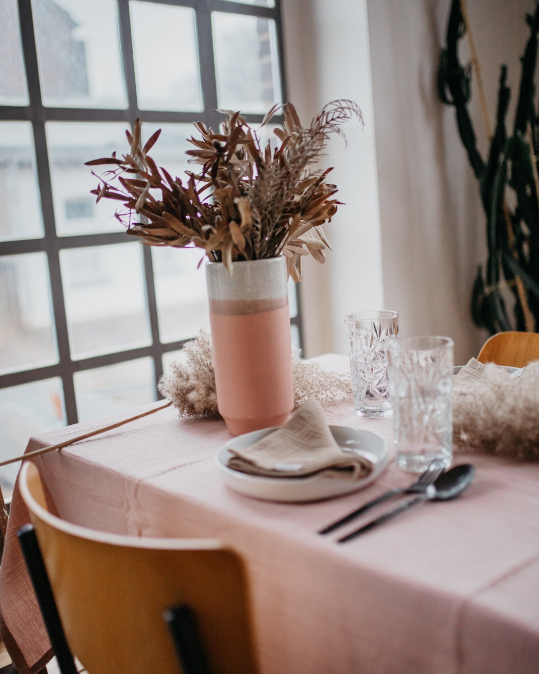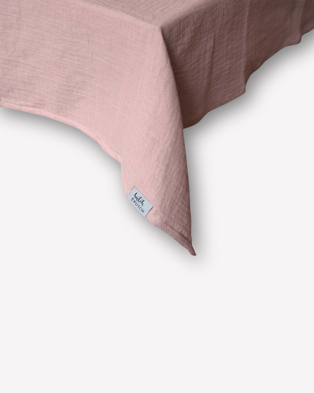 Tischlein deck dich! Unsere Musselin-Tischdecke in zartem Blush ist ein Garant für einen stilvoll gedeckten Tisch – egal ob beim Mittagessen mit der Familie oder beim Abendessen mit Freunden.