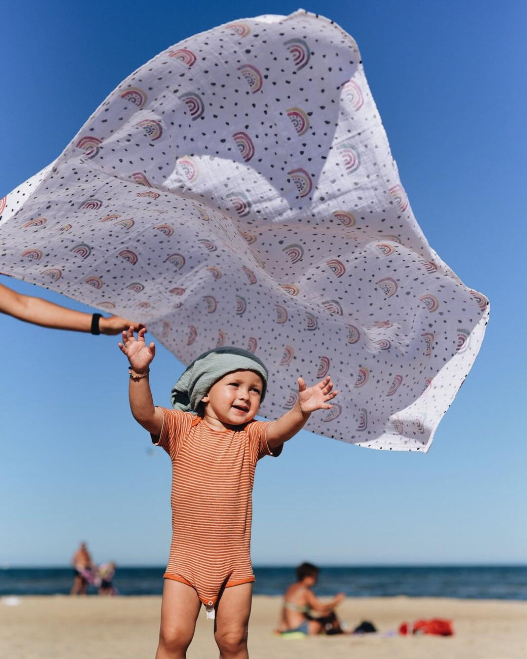 Das Mulltuch Regenbogen ist mittlerweile zu einer wahren Ikone geworden! Der farbenfrohe Print versprüht gute Laune und ist ein zeitloser Klassiker, sowohl für Mädchen als auch für Jungen. Unsere Mulltücher sind ein ideales Geschenk zur Babyparty oder Geburt.