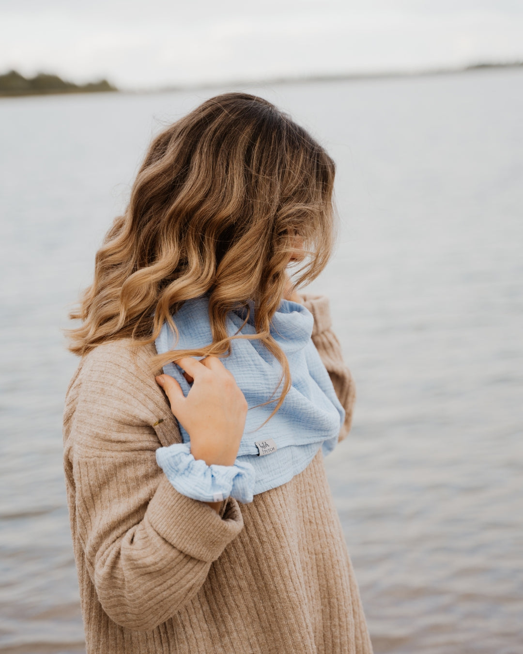 Ab sofort brauchst Du keine hunderte von Schals mehr! Unser Musselintuch in sanftem hellblau ist das perfekte Accessoire für modischen Teenies und Kinder - egal ob Winter oder Sommer! Dank der atmungsaktiven und temperaturausgleichenden Eigenschaft des Stoffes ist unser Musselintuch ein jahreszeitenunabhängiges Allroundtalent! Egal ob klassisch als Halstuch, stylish als Kopftuch, funktional als Turban, oder als Sarong und Flugzeugdecke beim Reisen - dieses Halstuch ist alles was Du brauchst ;) Weich und kratzfrei gibt es das Must-Have in vielen trendigen Farben und vier unterschiedlichen Größen für die ganze Familie.