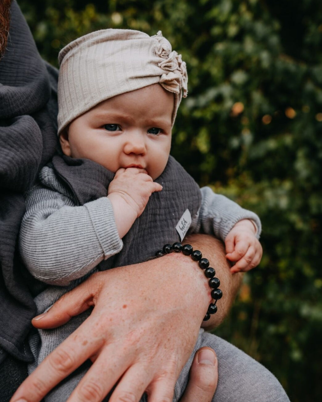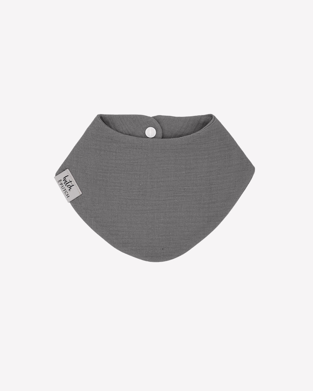 Das Musselin-Lätzchen mit Druckknopf in Anthrazit, ein zeitloser Grauton aus der Kollektion Nordic Aesthetics, versetzt euch gedanklich in die bergige Landschaft oder an die steinigen Küsten Skandinaviens. Es saugt alles auf, was daneben geht! Bestens geeignet bei zahnenden und spuckenden Babies. Für Babies und Kleinkinder ab 3 Monaten bis 2 Jahren. Perfekt als Geschenk zur Geburt oder Babyparty Geschenk.