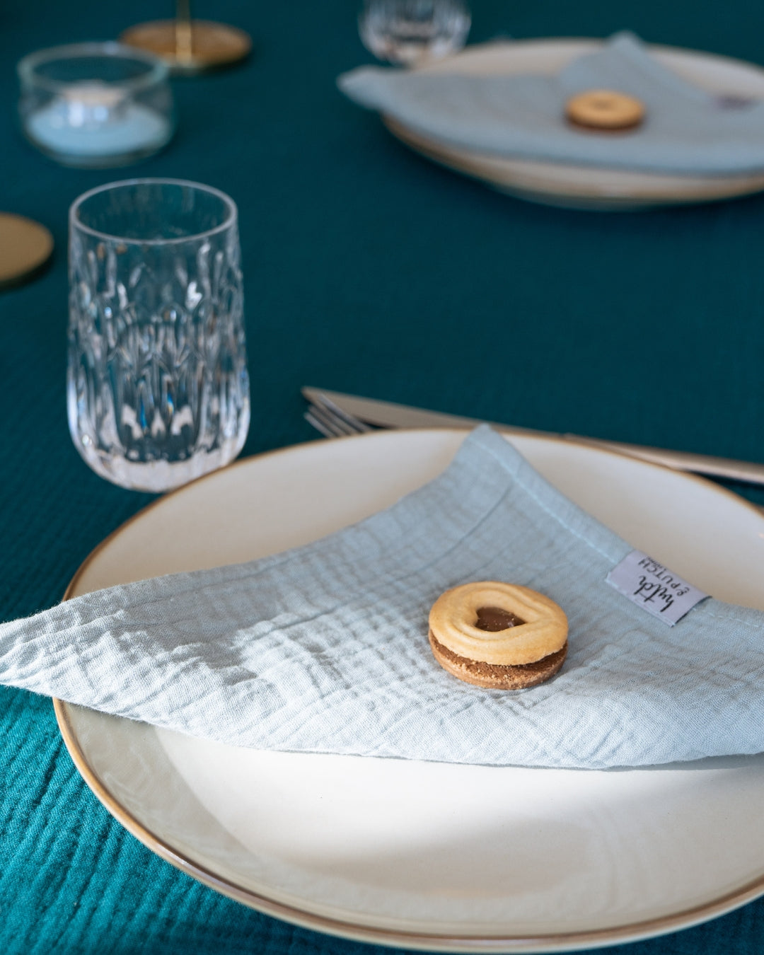 Sei es das Mittagessen mit der Familie oder das Dinner mit den besten Freunden – unsere Musselin-Textilien werten jeden Tisch auf und sind ein garantierter Blickfang.