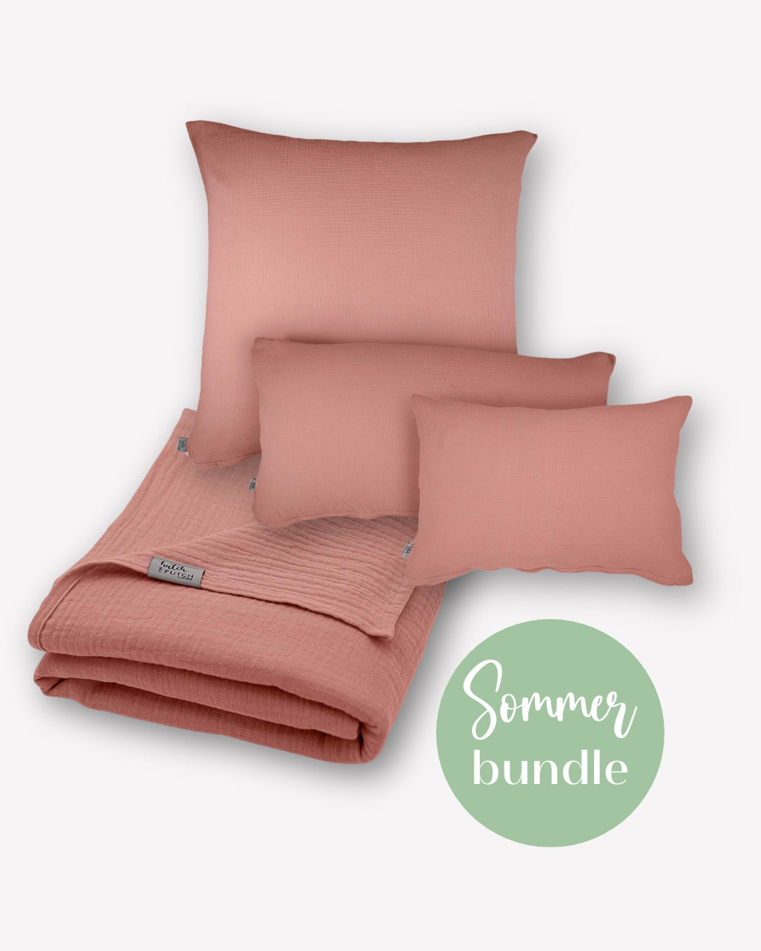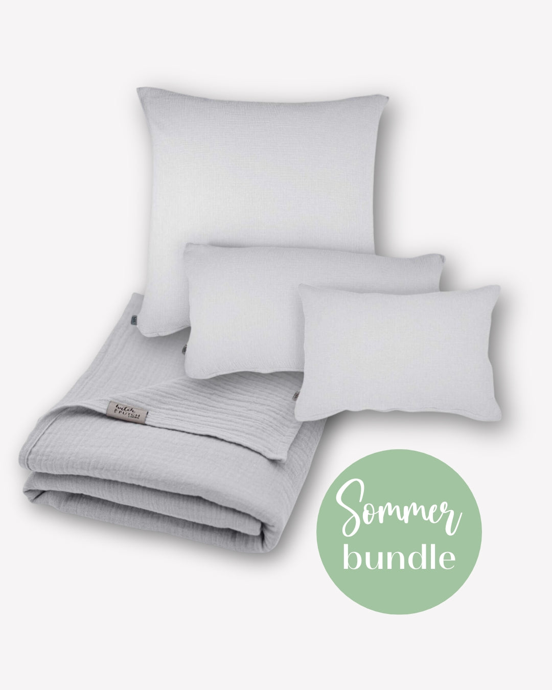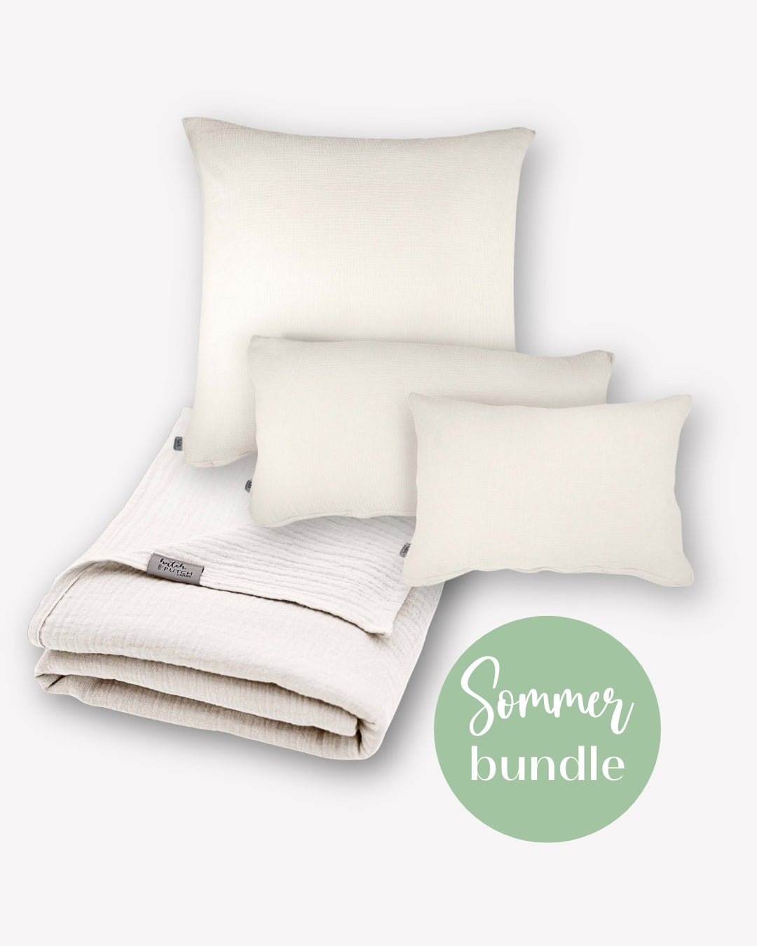 Schlafprobleme im Sommer gehören mit unserer federleichten Musselin-Sommerdecke "Josephin" und dem passenden Musselin-Kopfkissen der Vergangenheit an: Durch die atmungsaktive und temperaturausgleichende Eigenschaft von Musselin wirken unsere Decken und Kissen im Sommer kühlend und schützen vor Überhitzung. Dadurch sorgen sie für ein rundum angenehmes Schlafklima an heißen Sommernächten.