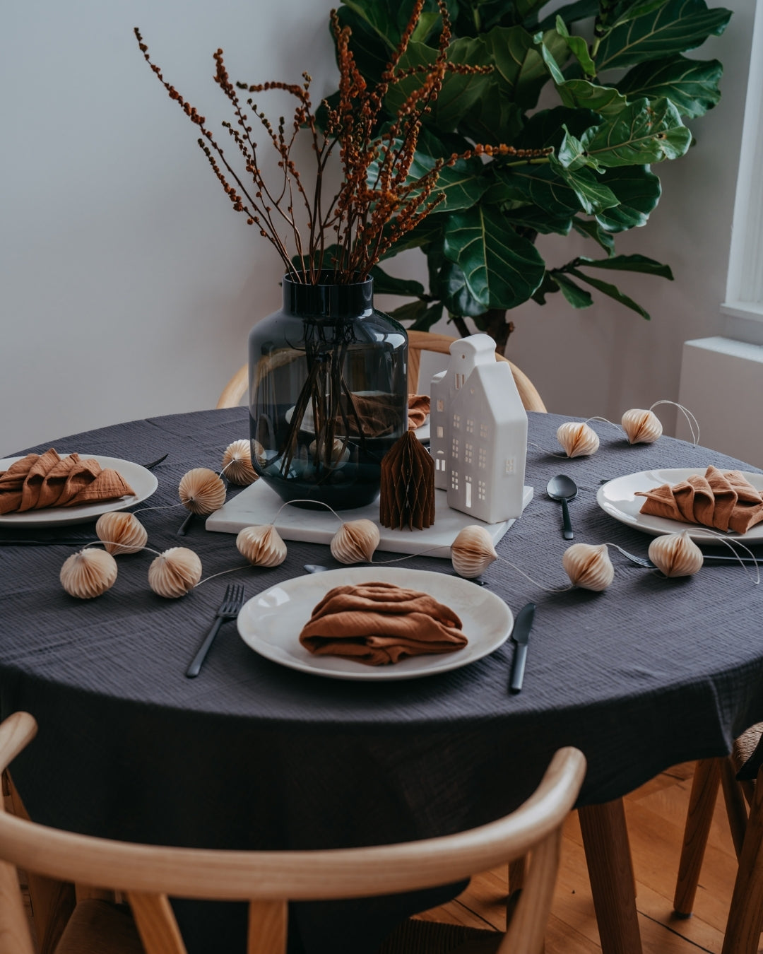 Tischlein deck dich! Unsere Musselin-Tischdecke in Anthrazit, ein zeitloser Grauton aus der Kollektion Nordic Aesthetics, versetzt euch gedanklich in die bergige Landschaft oder an die steinigen Küsten Skandinaviens und ist immer Garant für einen stilvoll gedeckten Tisch – egal ob beim Mittagessen mit der Familie oder beim Abendessen mit Freunden. Mit dem modernen und minimalistischen Grauton holt ihr euch das Skandi Wohngefühl nach Hause.