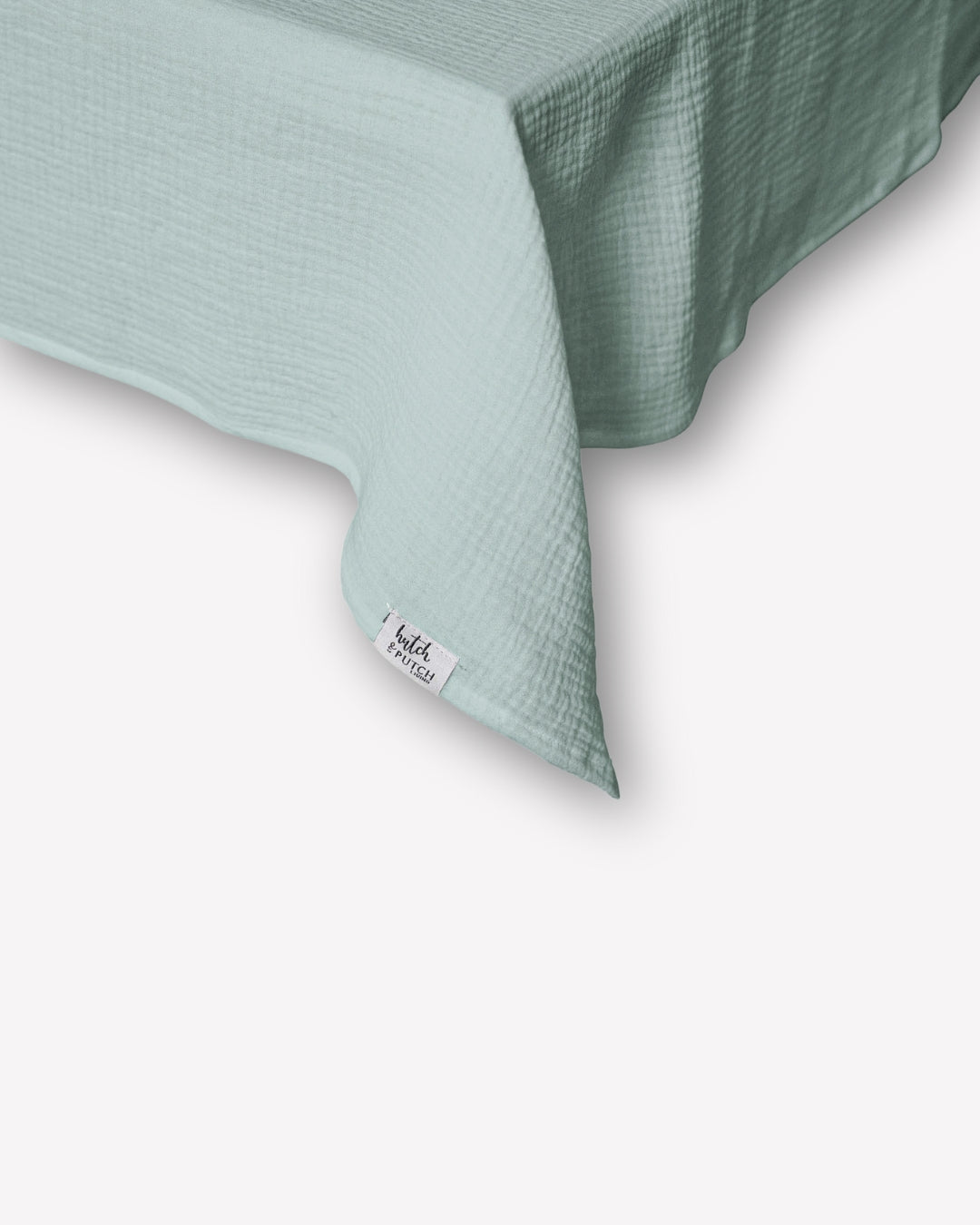 Die Farbe Aquamarine unserer Mother Earth Kollektion steht im Zeichen einer klaren Bergluft, mit der wir durch tiefe Atemzüge Beruhigung und Frieden finden. Ein frischer und sanfter grüner Farbton mit leichtem blaustich, dessen gelassene und meditative Energie Dir Erholung und Ruhe verschafft und Dich in Einklang mit Gedanken und Seele bringt. Unsere Musselin Tischdecke in sanftem Aquamarine ist perfekt für ein sommerliches und stilvolles Tischsetting.