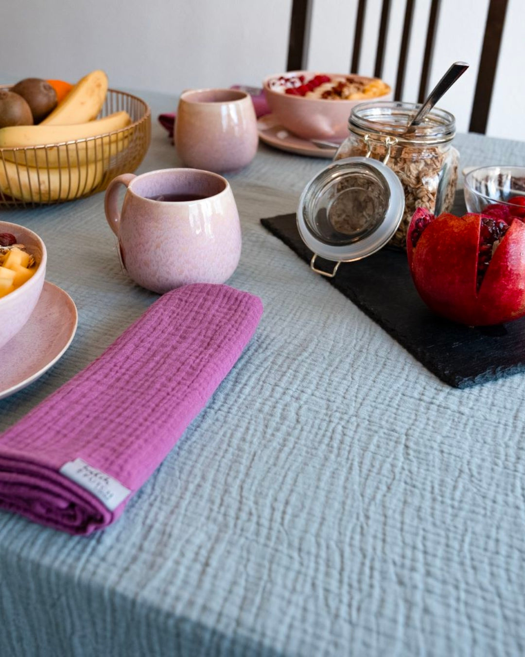 Sei es das Mittagessen mit der Familie oder das Dinner mit den besten Freunden – unsere Musselin-Textilien werten jeden Tisch auf und sind ein garantierter Blickfang.