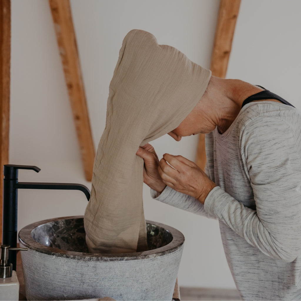 Haare und Gesicht waschen leicht gemacht: Anders als Frottee ist Musselin kuschelweich und schont Deine Haut bzw. Deine Haarstruktur.