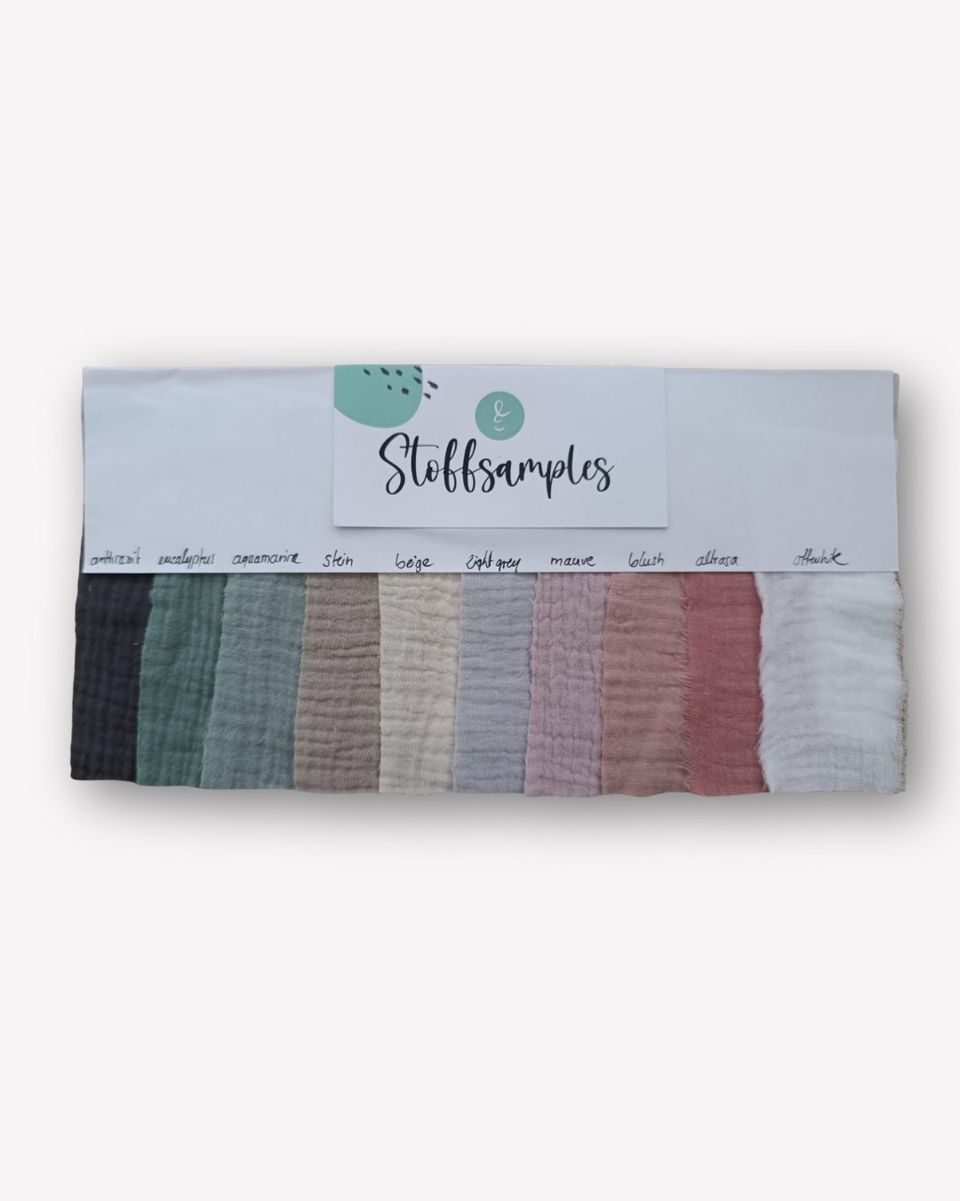 Du bist Dir unsicher, welche Farbe die Richtige für Dich ist? Mit unseren Stoffsamples gehört diese Sorge der Vergangenheit an und gleichzeitig können umweltbelastende Retouren vermieden werden. Wenn Du Deine Lieblings-Farbe gefunden hast, bekommst du bei deinem nächsten Einkauf ab einem MBW von 100 € die Kosten der Samples erstattet. Den dazugehörigen Code und die geltenden Bedingungen findest Du auf der Rückseite Deiner Samples. Die Stoffmuster sind versandkostenfrei!