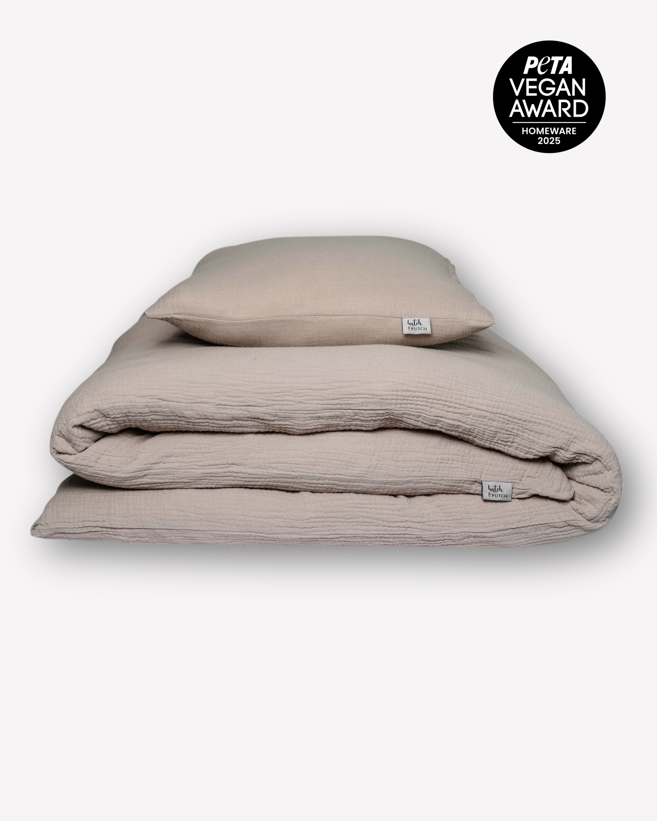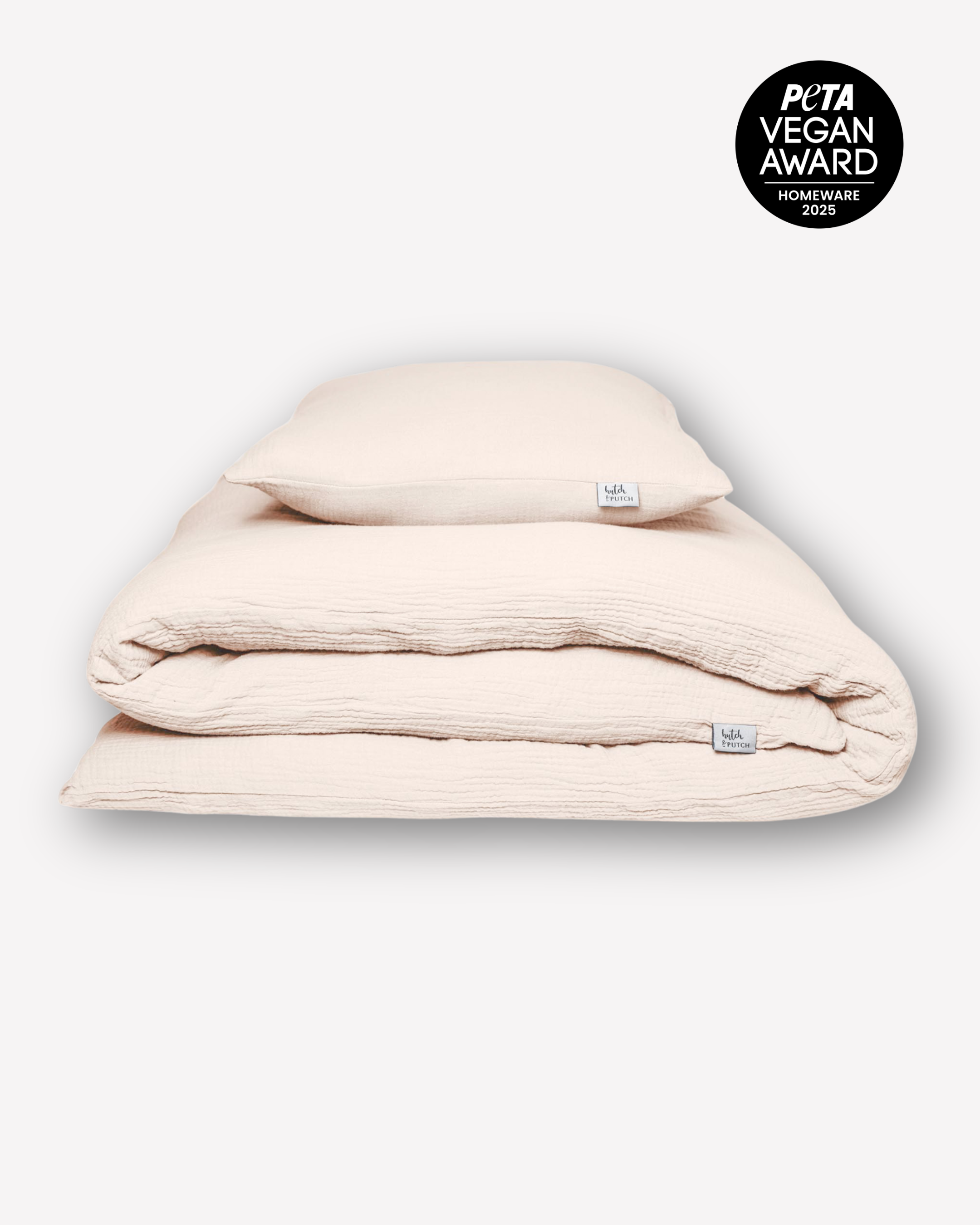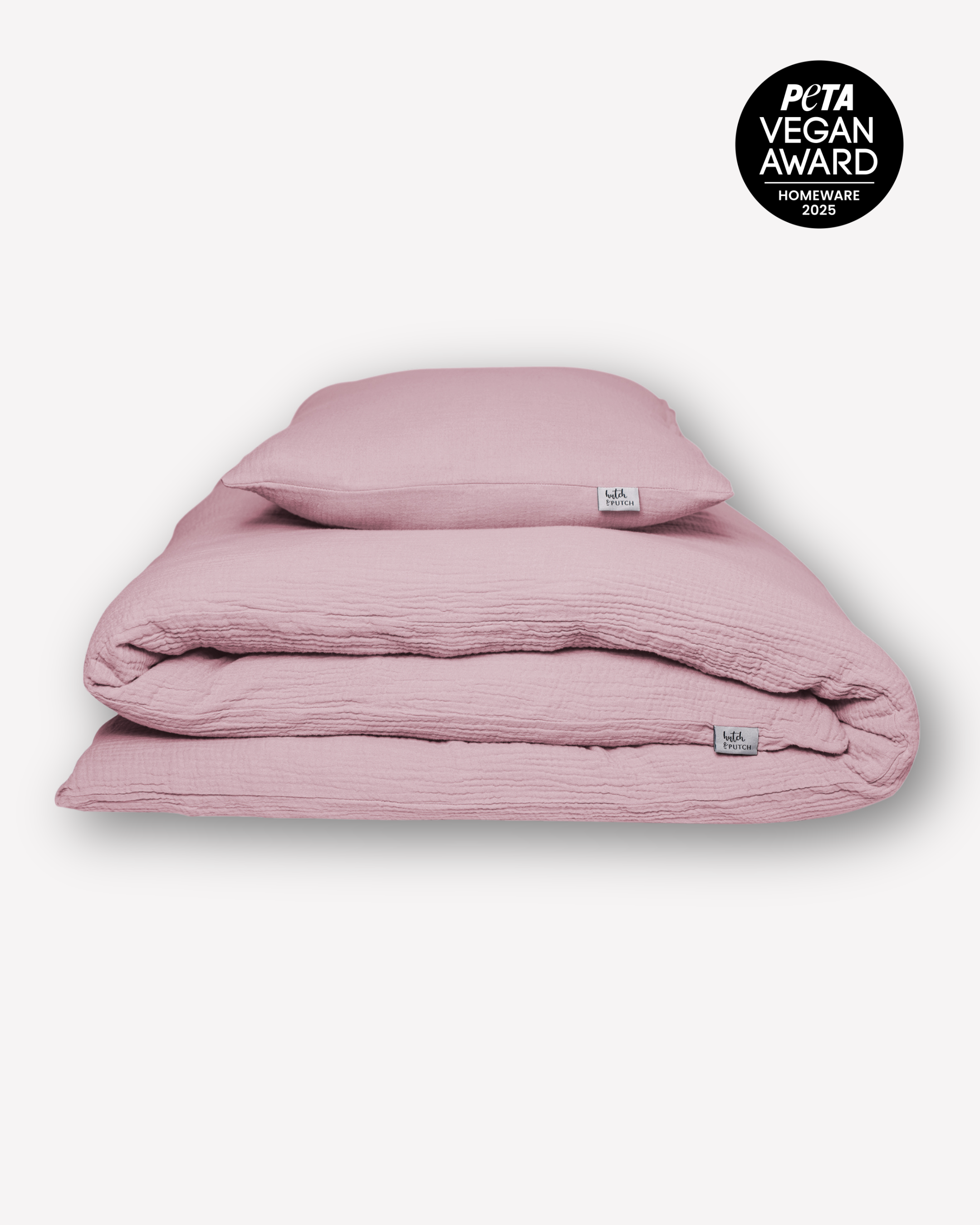 Unsere vegane Musselin-Bettwäsche "Eliane" wurde mit dem Peta Vegan Award prämiert.