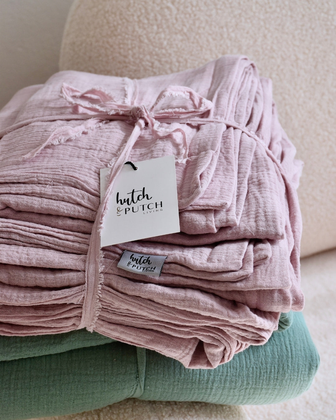 hutch&putch steht für hochwertige Musselin-Produkte, die alle ausnahmslos nachhaltig und fair produziert sind. Wir legen Wert auf Transparenz und garantieren, dass alle unsere Produkte vegan sind, aus 100% Bio-Baumwolle bestehen und unseren hohen Qualitätsansprüchen entsprechen.